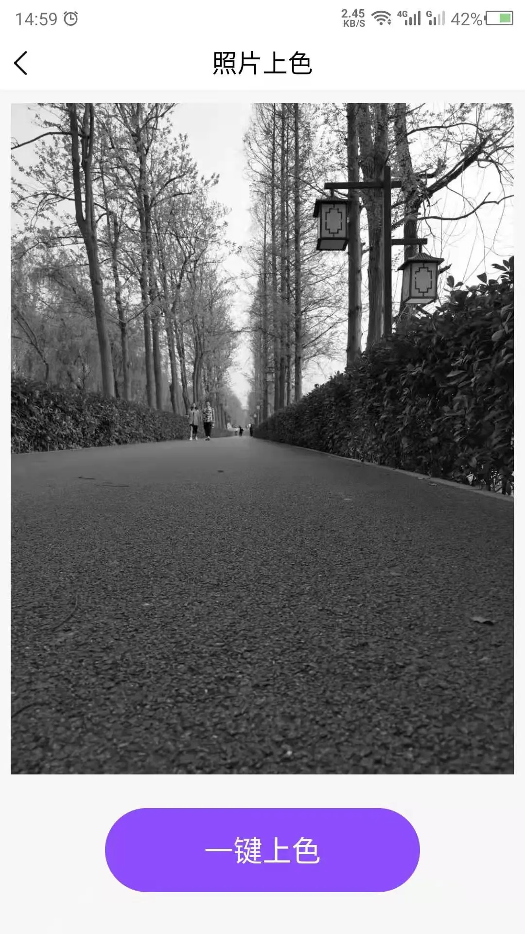 选择您的照片,然后点击上色,您将迅速得到彩色照片,无需久等。