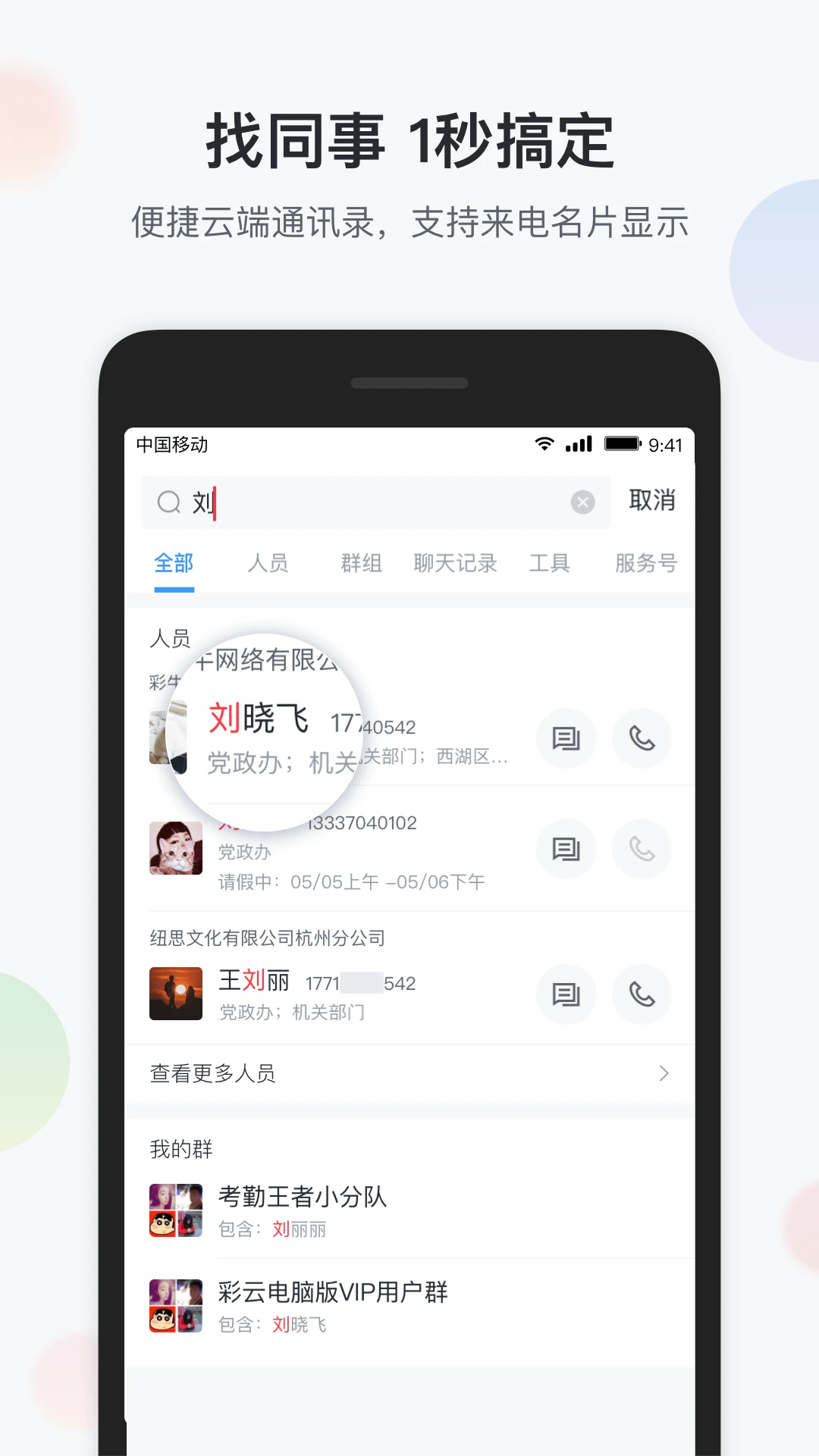 【通讯录】全面整合企业/个人/好友的通讯录,完整组织架构,1秒找同事。