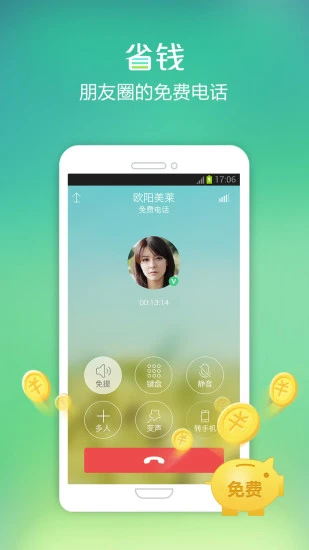 微话,实惠的高清免费网络电话,超1亿用户的正确选择。注册就送10-100V币。【国内长途任意打】 只要开通VIP,对方未装微话或不在线,也能打电话!【好友免费通话】 您和您的朋友都使用了微话,同时在线可尽情享受免费不限时的高清通话。【实时多人通话】公司开会、老同学聊天、家庭会议必备,完全免费!【高清语音】 微话采用先进的语音编解码技术,通话质量超越传统电话3倍。 【可变声的电话】通话中可把自己声音变成男人、女人、萌妹子、Tom猫,搞笑整蛊必备,让通话充满乐趣。【通讯录管理】 拥有联系人去重、来电归属地显示、自定义分组、群发短信、一键拨号、拨号键快速查找联系人等众多便捷功能。 【个性时尚】 主题换肤,秀出个性拨号界面;键盘背景自由设置,甜蜜合照、自拍萌照……随心所欲任你换。 【变身钢琴家】 告别单调泛味按键音,拨号键瞬间变身时尚钢琴键,海量唯美钢琴曲任你选,让你瞬间变身钢琴家。 "联系我们" 1.进入微话 - 更多 - 关于微话 - 有奖反馈2.微话官方QQ群:326277418 3.微话官方Email:service@vhua.com