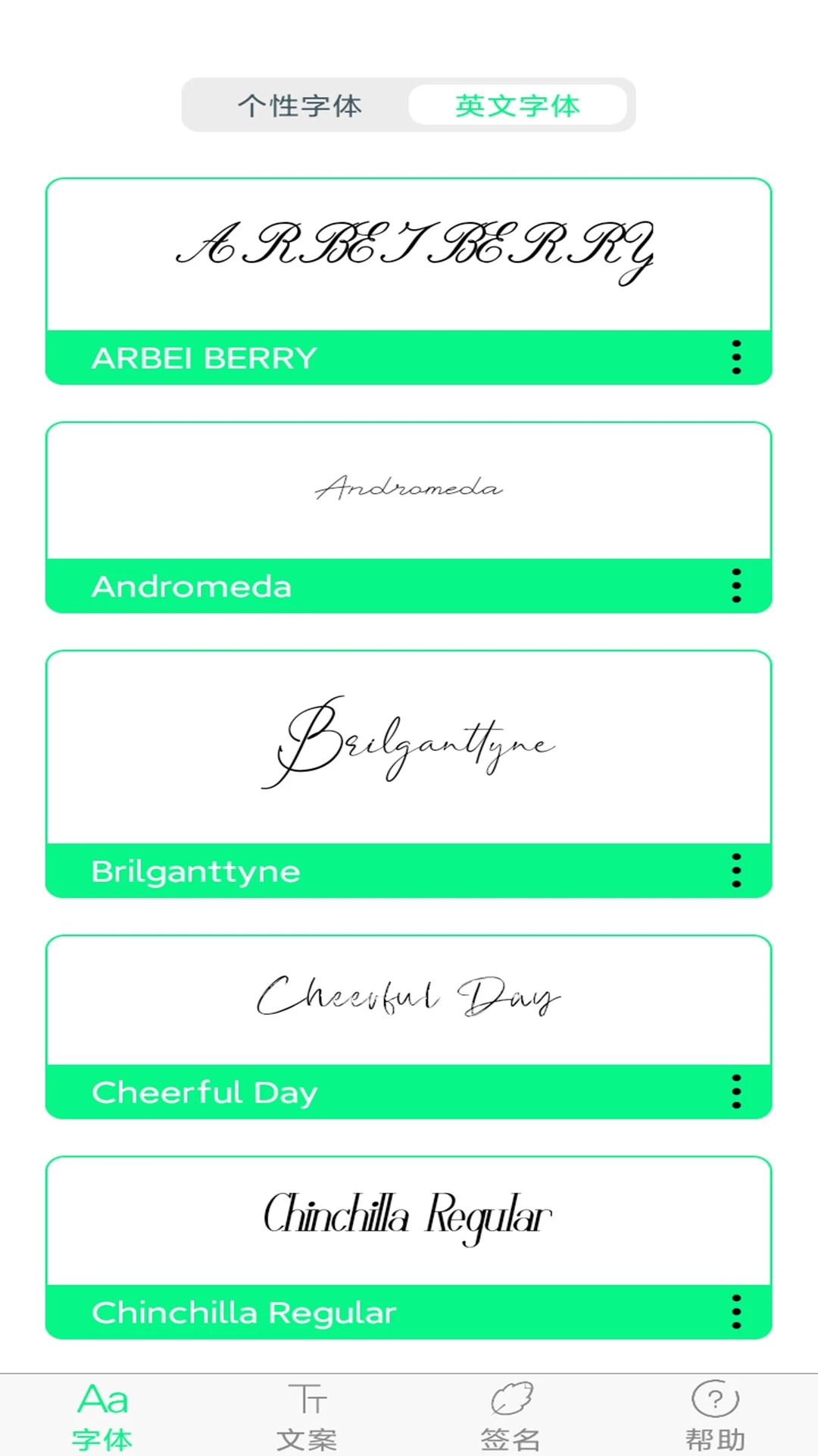 还在使用手机的默认字体吗?这里有好看的个性字体提供数百款精美的字体供您下载使用,手写卡通字体书法热门字体多种字体分类应有尽有,还可以使用字体设计签名,精选的文案分享好友,快来下载体验吧
