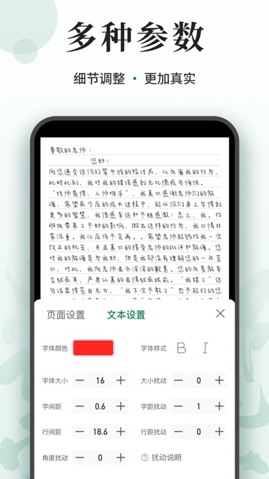 手写模拟器是一款专为需要频繁手写的用户设计的应用。它可以模拟手写,使您能够轻松地创建各种手写文档,无需手抄或打印。我们还提供了一键生成功能,可以让您在不到几秒钟内就可以完成手写文档的创建。 具有多种参数可供细节调整的功能,这意味着您可以根据自己的需求对字体、笔迹和笔画进行微调。此外,还提供了多种纸张类型可供选择,包括白色、黄色、灰色、蓝色等,以满足不同用户的需求。 手写模拟器还可以模拟实拍,让您的手写文档看起来更加自然逼真。此外,还支持多种文件格式,包括PDF、PNG、JPG等,让您可以轻松地将手写文档保存到您的设备上或与他人共享。 手写模拟器带你走进更便捷生活! 如使用过程中如遇问题,欢迎联系我们,可爱的客服妹纸会认真处理你的每一个反馈哦。 - 手写模拟器邮箱:yfkeji0203@163.com - 手写模拟器服务条款:https://www.freeprivacypolicy.com/live/1105d57d-bb9c-4bf6-9221-30341ef8cf98 - 手写模拟器隐私政策:https://www.freeprivacypolicy.com/live/9ba1a290-e2a2-47c1-9259-19854a246bfd 如果您喜欢手写模拟器,请在商店留下您珍贵的星星哦! 优化应用交互与运行细节,让使用更流畅
