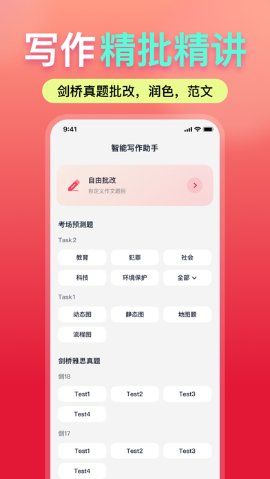 IELTS Writing AI Checker – 专为雅思写作打造的AI智能批改工具 收录剑桥雅思官方习题册(剑桥C8-C19)和历年考场真题,我们的AI导师助你更快实现雅思写作目标分数。 核心功能: 1. 剑桥雅思习题册与考场真题批改: • 覆盖剑桥雅思系列Task1,Task2,考官批改建议及真实考题。 • 精准匹配雅思考试标准,针对性备考更高效。 2. 精准作文反馈与写作分数评估: • 针对你的原创作文提供清晰的语法、词汇与结构优化建议。 • 确保符合雅思评分标准,提供准确的分数评估。 3. 高分范文示例: • 提供不同分数段的高质量范文。 • 清晰展示达到目标分数所需的写作要素。 4. 语法与拼写修正: • 智能检测并修正语法、标点及拼写错误,提高写作准确性。 5. 答案润色与重构: • 优化句子表达,提升句子的清晰度、简洁性与逻辑流畅性。 • 打造结构严谨、表达精准的高质量答案。 6. 高分写作库精选: • 提供高分作文范例,助你掌握结构、词汇及写作思路。 7. 详细反馈与可执行改进建议: • 逐步解析评分要点,提供具体改进方向。 • 帮助你提升任务完成度、连贯性及词汇丰富度。 【自动续费雅思写作会员提示】 -- 雅思写作会员权益:每天可对话500次,雅思写作练习和模考,雅思小范围预测题和智能总结功能。 -- 订阅周期:1个月(雅思写作会员连续包月产品),2个月(雅思写作会员连续包2月产品),6个月(雅思写作会员连续包半年产品)。 -- 订阅价格:以IAP申请信息为准,例如连续包月产品每月88元,连续包2月产品每2月128元,连续包半年产品每年348元。 -- 付款:用户确认购买并付款后记入iTunes账户。 -- 取消续订:如需取消续订,请在当前订阅周期到期前24小时以前,手动在iTunes/Apple ID设置管理中关闭自动续订功能。 -- 续订:苹果iTunes账户会在到期前24小时内扣费,扣费成功后订阅周期顺延一个订阅周期。 -- 隐私政策:https://sparkos.notion.site/Privacy-Policy-0df32804eb8b4f55a289bc6beeb0c11d?pvs=4 -- 用户协议:https://sparkos.notion.site/Terms-of-Service-15c378b742f7809dafd1f312b19b1273?pvs=4 新增《剑桥雅思写作真题集20》——包含Task 1与Task 2题目及范文解析。