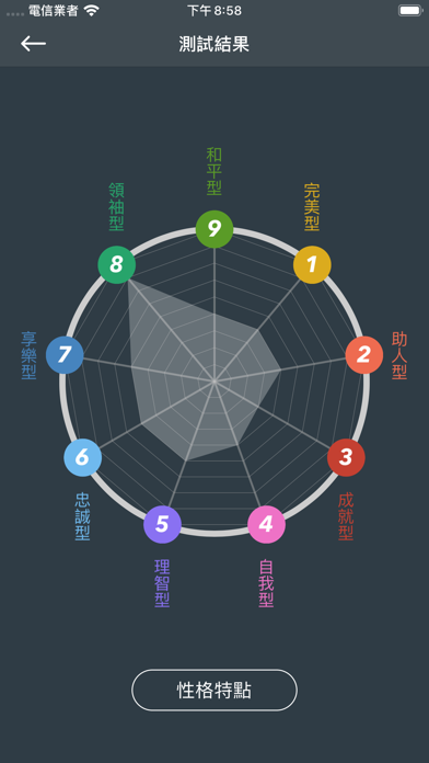 九型人格是一个近年来倍受美国斯坦福大学等国际著名大学MBA学员推崇并成为现今最热门的课程之一,近十几年来已风行欧美学术界及工商界。全球500强企业的管理阶层均有研习九型性格,并以此培训员工,建立团队,提高执行力。 九型人格不仅仅是一种精妙的性格分析工具,更主要的是为个人修养、自我提升和历练提供更深入的洞察力。它可以让人真正地知己知彼,从而接纳自己的短处、活出自己的长处;从而懂得如何与不同的人交往沟通及融洽相处,与别人建立更真挚、和谐的合作伙伴关系。 特色功能: - 近800道测试题 - 以图表显示,清晰简要 - 以独有的分类解析,方便对比不同型格的差异 -- 性格特点 -- 世界观 -- 性格关键词 -- 关注点 -- 代表人物 -- 说话方式 -- 性格惯性 -- 思维破解 -- 侧翼 -- 成长 -- 退化 -- 发展层级 -- 相处之道 -- 更多分类在更新中... 【自动订阅服务说明】 - 解锁测试题,订阅价格:¥8.0/年 - 解锁文字说明,订阅价格:¥18.0/年 - 移除广告,订阅价格:¥18.0/年 订阅会在学期结束时自动续订,除非提前24小时取消。确认购买并付款后,款项将计入iTunes账户。苹果iTunes账户会在到期前24小时内扣费,扣费成功后订阅周期顺延一个订阅周期。如需取消续订,请在苹果手机【设置】--进入【iTunes Store与App Store】--点击【Apple ID】--选择【查看Apple ID】--进入【账户设置】--点击【订阅】,选择腾讯体育会员取消订阅。如未在订阅期结束的至少24小时前关闭订阅,则此订阅将会自动续订 - 隐私协议:http://www.jijijaja.com/apps/privacyGame.htm - 订阅协议:http://www.jijijaja.com/apps/appleSubscript.htm- 优化数据 - 修复问题