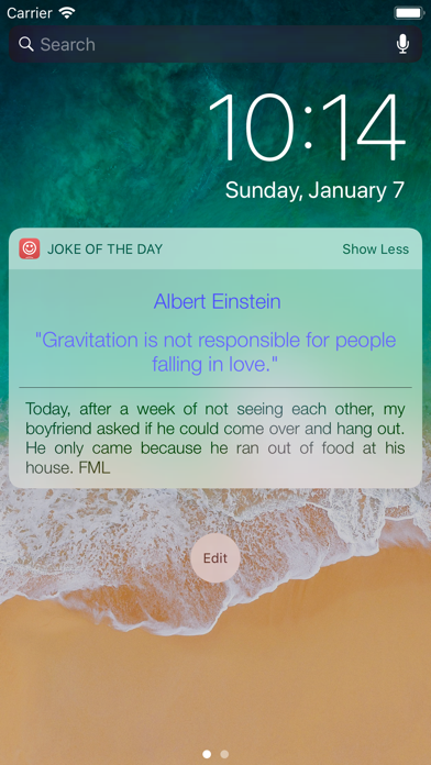 这些Widget与新的iOS 14主屏幕Widget兼容。 由于有了这个应用程序(以及PacoLabs的其他Widget应用程序),您现在可以通过添加用于某些特定目的的自定义窗口小部件来自定义设备的Today视图。 从设备上的任何位置,只需简单地上下滑动,您就可以访问自己的信息和操作。 每个“每日笑话”小部件都允许每天阅读一个笑话。 玩得开心,每天笑。 该小部件连接到一些专门的网站,这些网站每天都会提供一些笑话的RSS内容。 某些网站已经保存在应用程序中并进行了组织,但是您也可以添加自己喜欢的网站。 文本可以以不同的方式显示(如大小,字体,颜色,对齐方式)。 轻触笑话将使您可以查看源网页。 该应用程序确实易于使用,并且适合您设备的新鲜外观。 支持iOS13的暗模式。 您可以根据需要添加任意数量的小部件,它们将最多显示在3个不同的列表中。这些相同的列表将在“今日”视图和应用程序中可用(尽管您可以在“今日”视图中隐藏一些小部件)。 为避免“今日”视图超载,当显示的窗口小部件太多时,直观的控件将允许您从一个窗口小部件导航到另一个窗口小部件。 即使应用程序的主要目的是在“今日”视图中查看小部件,也可以非常方便地直接在应用程序中查看它们(长按“今日”视图中的小部件将直接在主应用程序中将其打开) )。 * 支持在字体选择器中选择系统字体。 * 修复了部分问题并进行了优化。