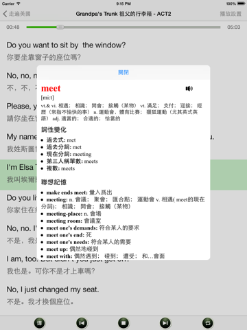 一次下载,无需联网。所有iOS设备通用。包含《走遍美国》全集音频,标准美式发音,中英文同步字幕,有声英汉全文字典,随点随读。 文中每个英文单词都有详细的解释, 音标, 发音以及例句用法, 在阅读的时候只需在任意单词上长按, 即可查阅, 即点即译, 真正做到哪里不懂点哪里。修复iOS16的一些兼容问题