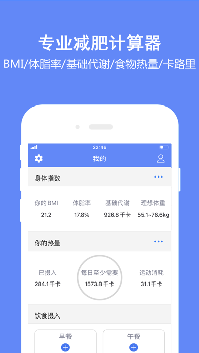 减肥计算器-减肥减脂必备助手app 了解你的BMI/体脂率/基础代谢/卡路里消耗 食物热量查询计算及记录,运动热量消耗计算及记录。 支持数千种食物热量查询计算,平时点个外卖螺狮粉喝杯奶茶都能查到热量并记录下来 支持数百种运动的热量消耗查询计算,平时走路步数我们已经自动帮你换算成卡路里消耗 Weight Loss Counter Learn your body index:BMI/BFP/BM/Ideal Body Weight Diet Calories Counter & Diet Record Exercise Calories Burned & Exercise Record Privacy Policy for Healthkit: This app will ask you to access to your Apple Health.You can close it on Settings>Privacy Policy>Health. This app needs to connect your Aplle Health by Healthkit.It will import your body weight/height/birthday/sex/your steps data from Apple Health after you connected successfully.fixed bugs