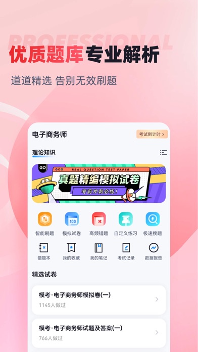 《电子商务师考试聚题库》—— 高效备考,通关无忧 正在备战电子商务师资格认证考试?《电子商务师考试聚题库》是您不可或缺的备考利器。本应用专注于提供全面、精准的练习资源,助您系统掌握考点,轻松应对考试挑战。 海量真题模拟实战体验 应用内含大量历年真题及高质量模拟试卷,高度还原真实考场环境与题型难度。通过模拟考试功能,您可以随时进行全真模考,限时答题,体验实战氛围。考后系统即时智能评分并生成详细报告,帮助您清晰了解当前水平,精准定位薄弱环节。 系统知识点练习 告别盲目刷题,我们依据最新考试大纲,将庞杂的电子商务知识体系科学分类为清晰的知识点模块。无论您需要强化网络营销、电子商务安全、物流管理还是法律法规等内容,都能快速找到对应练习。针对性练习让您高效巩固理论,扎实掌握每一个核心考点。 智能错题本巩固薄弱环节 练习或考试中产生的错题会被自动收录至专属错题本。错题本记录题目与您的错误答案,并提供正确答案与详尽解析。您可以随时回顾、反复练习错题,并支持按知识点或时间进行筛选管理。这个功能确保您能彻底攻克易错点,避免重复失误,学习效率倍增。 《电子商务师考试聚题库》集模拟考试、知识点精练与错题管理于一体,设计科学,操作便捷。是您系统复习、查漏补缺、提升应试能力的理想选择。下载应用,开启高效备考之旅,助力您顺利通过电子商务师考试。优化已知问题 更新最新题库