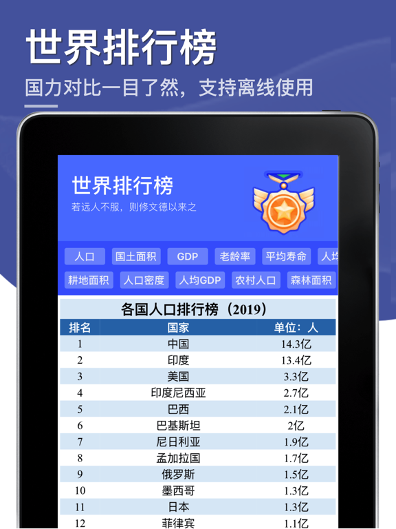 ※ 最丰富完整的世界知识大宝典,内容持续更新中 ※ √ 内含世界各国以及中国各省高清地图 √ 支持离线使用,无需网络也可纵览世界 【世界地图和中国地图】 立即免费拥有典藏版世界和中国地图册! 高清收录世界政区图、世界地形图、世界时区图、世界版块分布图、世界气候类型图... 以及中国人文地图、中国地形图、中国政区图、中国港口分布图、高速公路图、高铁线路图... 陆续更新中! 【世界各国】 属于你的全球五大洲190个国家和地区的知识资料库。 内容囊括各国地图、国旗、国歌、国家人口、面积、首都等概况信息 【中国各省】 收录中国34个省级行政区划图,旅游导览图、地形地貌图 各省美食排行榜、各省景点排行榜 各省GDP、人口、土地面积等概况信息 【世界排行榜】 从全球人口、GDP、土地面积、耕地面积、平均寿命、碳排放、耗电量、外汇储备等二十个维度进行排行 带你了解不一样的世界各国 【世界之最】 想知道地球上种植最多的农作物是什么吗? 最古老的种子植物?最长的地铁?最大的反射式望远镜? 统统可以在这里找到答案 希望你们能喜欢 :) 内容纠错及反馈,请联系客服微信:JGDBK001- 更新备案信息 - 修复几处适配bug