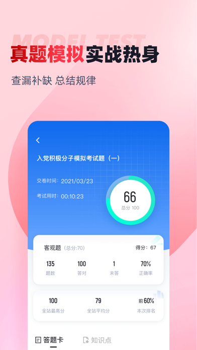 入党积极分子考试聚题库——专业备考 系统学习 助力思想理论提升 备战入党积极分子培训结业考试?入党积极分子考试聚题库是您专业可靠的学习助手。我们提供权威精准的学习资源,助您系统掌握党的理论知识,全面提升政治素养。 真题模拟实战演练 应用内精选汇集各地培训考试真题及高质量模拟试卷,严格依据最新培训大纲精心编写。通过模拟考试功能,您可体验真实考场环境,进行全真限时测试。考试结束后,系统即时生成详细分析报告,清晰展示您在党的基本知识、党史、党章、时事政策等各模块的掌握情况。智能评估系统精准定位知识薄弱环节,帮助您明确学习重点和改进方向。 系统化知识点练习 我们依据培训要求将知识点科学分类,涵盖党的基本理论、党史重要事件、党章基本内容、党的纪律处分条例、最新时事政策、中国特色社会主义理论等核心内容。每个知识点模块都配有专项练习题和详细解析,帮助您深入理解党的理论知识。您可以根据学习进度选择对应章节练习,巩固理论基础,掌握重点难点。 入党积极分子考试聚题库集权威真题模拟与系统知识点练习于一体,设计科学,操作便捷。通过反复的学习训练,帮助您夯实理论基础,提升政治素养。应用内容持续更新,紧跟最新理论发展和政策要求,是您备考复习、查漏补缺、提升通过率的专业工具。立即下载应用,开启系统学习之旅,为成为一名合格的入党积极分子奠定坚实基础。优化已知问题 更新最新题库