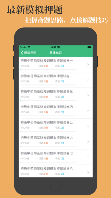 本软件为初级中药师考试的软件,精心准备的最新考试题库。为考试的提供了充分的复习准备,可随时随地学习练习,有效帮助顺利通过考试,学习知识通过考试必备神器! 初级中药师考试题型共为A1、B1两个题型。 A1型单选题是题干以论述题形式出现,或为叙述式,或为否定式。答题时,要求在5个备选答案中肯定或否定1项,作为正确答案。 B1型共用备选答案单选题,每道试题由A、B、C、D、E 5个备选答案与2个或2个以上的题干组成,5个备选答案在前,题干在后。答题时,要求为每个题干选择1项作为正确答案。每个备选答案可以选用1次或1次以上;也可以1次也不选用。为了试卷的规范化及分数计算的统一性,命题时要求B1型题一律用2个题干。 【功能介绍】 1、模拟试题:分不同A1、B1型模拟考试试题,包含最新考题,并有答案解析。 2、随机模拟测试:随机生成试题模拟测试,检验复习成果,可自动将错题加入到错题库。 3、错题库:可自动加练习过程中错题加入收藏,以便反复练习。 4、收藏夹:可在练习过程中自行收录题目到收藏夹,形成自己的小题库,针对性练习,提高通过率。 5、安装后可离线浏览,不用联网也可以浏览,速度快,无广告。 6、支持同时在iPad/iphone/itouch等多种设备中安装。 7、定期更新题库。1、修复BUG。 2、新增最新试题。