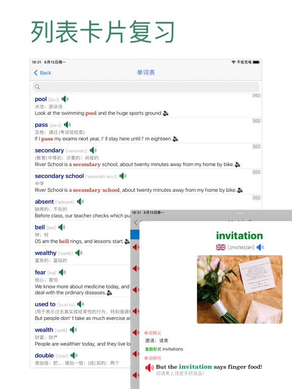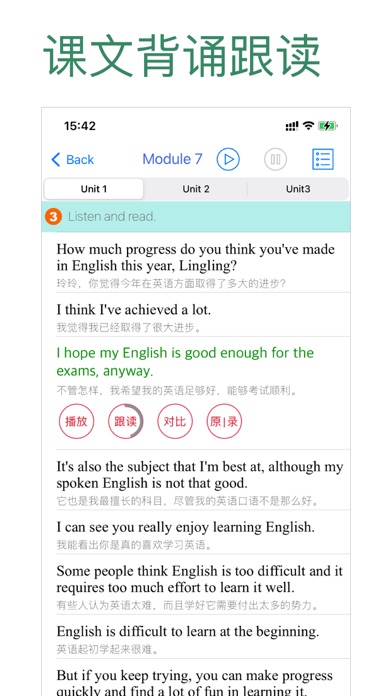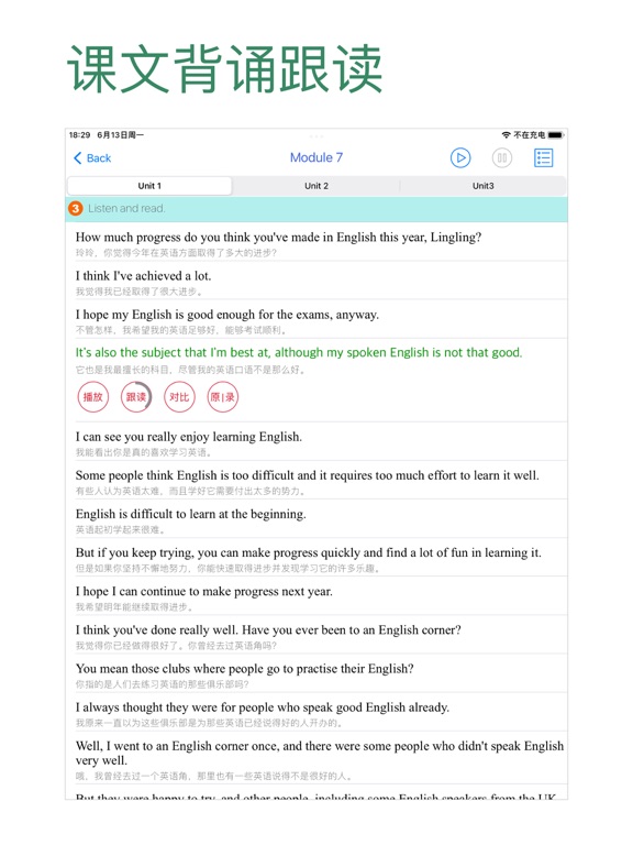 围绕实效性,与现行的人教版初中英语教材完全同步: - 小升初衔接 - 词汇快速立体记忆 - 词汇自助听写 - 艾宾浩斯记忆曲线法背单词 - 课文及时跟读 - 语音规范练习 - 英语生词本 围绕实效性,科学的规划学习过程,这里有: - 小升初无缝衔接 - 立体全方位单词记忆 - 标准的语音范本 - 便捷的跟读操作 - 迅捷的单词背诵手段 - 反馈 - 您的反馈对软件极其重要,有任何建议,请反馈至本软件专用邮箱:zyxins@foxmail.com 其他功能,有序开发中,敬请关注!本次更新: 1. 增加词汇扩展例句 2. 移除单词与课文跟列表广告 3. 优化用户界面交互 4. 修改反馈的问题 最近更新: 1. 为课文听读增加播放模式,次数,倍速,信息切换 2. 增强课文跟读功能 3. 增加艾宾浩斯记忆曲线法背单词 4. 增加听写列表单词和汉译的大字体显示,便于投屏 5. 增加自由组合听写单词的功能