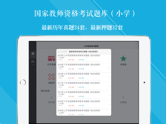 国家教师资格考试(小学)2023通关神器! 最新押题(30套)+历年真题(24套) 一款五星级评价的APP,通关无忧! 全科目《综合素质》《教育教学知识与能力》为国家教师资格考试(小学)考试量身打造,助您顺利通过考试。 【题库内容】 押题 国家教师资格考试模拟押题(一)《教育教学知识与能力》 国家教师资格考试模拟押题(二)《教育教学知识与能力》 国家教师资格考试模拟押题(三)《教育教学知识与能力》 国家教师资格考试模拟押题(四)《教育教学知识与能力》 国家教师资格考试模拟押题(五)《教育教学知识与能力》 国家教师资格考试模拟押题(六)《教育教学知识与能力》 国家教师资格考试模拟押题(七)《教育教学知识与能力》 国家教师资格考试模拟押题(八)《教育教学知识与能力》 国家教师资格考试模拟押题(九)《教育教学知识与能力》 国家教师资格考试模拟押题(十)《教育教学知识与能力》 国家教师资格考试模拟押题(十一)《教育教学知识与能力》 国家教师资格考试模拟押题(十二)《教育教学知识与能力》 国家教师资格考试模拟押题(十三)《教育教学知识与能力》 国家教师资格考试模拟押题(十四)《教育教学知识与能力》 国家教师资格考试模拟押题(十五)《教育教学知识与能力》 ..... 真题 2021年国家教师资格考试真题《综合素质》(小学) 2020年国家教师资格考试真题《综合素质》(小学) 2019年上半年国家教师资格考试真题《综合素质》(小学) 2018年下半年国家教师资格考试真题《综合素质》(小学) 2018年上半年国家教师资格考试真题《综合素质》(小学) 2017年下半年国家教师资格考试真题《综合素质》(小学) 2017年上半年国家教师资格考试真题《综合素质》(小学) 2016年下半年国家教师资格考试真题《综合素质》(小学) 2016年上半年国家教师资格考试真题《综合素质》(小学) 2015年下半年国家教师资格考试真题《综合素质》(小学) 2015年上半年国家教师资格考试真题《综合素质》(小学) 2014年下半年国家教师资格考试真题 《综合素质》(小学) 2014年上半年国家教师资格考试真题《综合素质》(小学) 2013年下半年国家教师资格考试真题《综合素质》(小学) 2013年上半年国家教师资格考试真题《综合素质》(小学) 国家教师资格考试模拟押题试卷(一)《综合素质》(小学) 国家教师资格考试模拟押题试卷(二)《综合素质》(小学) 国家教师资格考试模拟押题试卷(三)《综合素质》(小学) 国家教师资格考试模拟押题试卷(四)《综合素质》(小学) 国家教师资格考试模拟押题试卷(五)《综合素质》(小学) 国家教师资格考试模拟押题试卷(六)《综合素质》(小学) 国家教师资格考试模拟押题试卷(七)《综合素质》(小学) 国家教师资格考试模拟押题试卷(八)《综合素质》(小学) 国家教师资格考试模拟押题试卷(九)《综合素质》(小学) 国家教师资格考试模拟押题试卷(十)《综合素质》(小学) 国家教师资格考试模拟押题试卷(十一)《综合素质》(小学) 国家教师资格考试模拟押题试卷(十二)《综合素质》(小学) 国家教师资格考试模拟押题试卷(十三)《综合素质》(小学) 国家教师资格考试模拟押题试卷(十四)《综合素质》(小学) 国家教师资格考试模拟押题试卷(十五)《综合素质》(小学) ...... 2021年国家教师资格考试真题《教育教学知识与能力》(小学) 2020年国家教师资格考试真题《教育教学知识与能力》(小学) 2019年上半年国家教师资格考试真题《教育教学知识与能力》(小学) 2018年下半年国家教师资格考试真题《教育教学知识与能力》(小学) 2018年上半年国家教师资格考试真题《教育教学知识与能力》(小学) 2017年下半年国家教师资格考试真题《教育教学知识与能力》(小学) 2017年上半年国家教师资格考试真题《教育教学知识与能力》(小学) 2016年下半年国家教师资格考试真题《教育教学知识与能力》(小学) 2016年上半年国家教师资格考试真题《教育教学知识与能力》(小学) 2015年下半年国家教师资格考试真题《教育教学知识与能力》(小学) 2015年上半年国家教师资格考试真题《教育教学知识与能力》(小学) 2014年下半年国家教师资格考试真题《教育教学知识与能力》(小学) 2014年上半年国家教师资格考试真题《教育教学知识与能力》(小学) 2013年下半年国家教师资格考试真题《教育教学知识与能力》(小学) 2013年上半年国家教师资格考试真题《教育教学知识与能力》(小学) ..... 【功能介绍】 1、历史真题:精选最新的历史真题强化练习,并可手动将易错或未牢固掌握的题加入收藏,以便反复练习。 2、模拟考试:模拟考试试题和章节练习,包含最新考题,并有答案解析。 3、错题库:可自动加练习过程中错题加入收藏,以便反复练习。 4、收藏夹:可在练习过程中自行收录题目到收藏夹,形成自己的小题库,针对性练习,提高通过率。 5、安装后可离线浏览,不用联网也可以浏览,速度快,无广告。 6、支持同时在iPad/iphone/itouch等多种设备中安装。 7、定期更新题库。新增试题和修复BUG。
