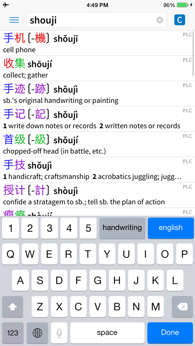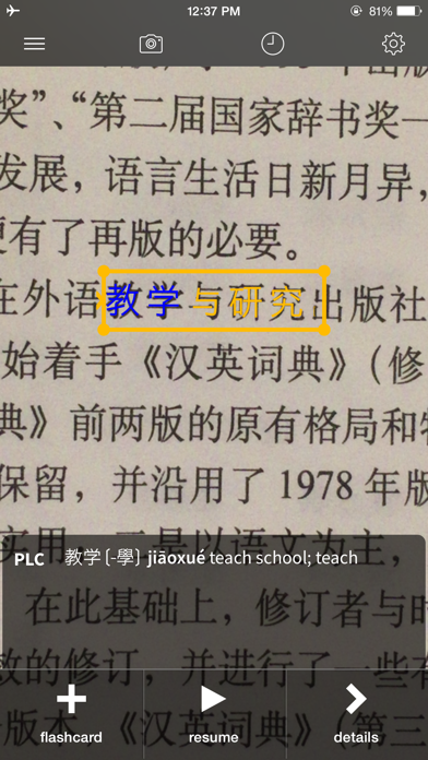 注意: 本应用的用户界面当前仅有英文版。 Pleco是终极的中文伴侣 - 集成了词典/文档阅读器/单词卡系统,支持全屏手写输入及实时OCR功能,出品公司自2001年开始一直致力于开发世界最优秀的移动中文学习应用。 主要功能: ($ = 付费插件) • 卓越的词典。内置两款实用的免费词典: 一款是流行的开源CC-CEDICT,拥有超过110,000个常更新的词条,另一款是我们自己的PLC词典,拥有125,000个更多详细词条及超过25,000个例句(带拼音)。此外还提供二十几个其他免费及付费($)词典插件。 • 强大的搜索: 可使用汉字、拼音或英语来搜索单词,支持通配符和全文搜索功能。无需繁琐地切换词典来查词,只需输入你的搜索词,即刻会出现一个按频率排序的综合结果列表。 • 链接和交叉参考: 可轻松查询汉字组成部分、将词语拆分成单字、查询含某个字的词语,或搜索所有词典查看例句。 • 通用于大陆/香港/台湾: Pleco全面支持简繁汉字,词目发音可显示注音和拼音,甚至还支持粤语。 • 音频: 通过iOS 7的文字转语音系统免费内置;我们还提供中文母语者的普通话及粤语录音插件,以及一个更高品质的普通话文字转语音系统插件。 • 文档阅读器: 可粘贴粘贴板上的文字,点按其中的单词可即刻查词。升级($)后支持点按查询,支持的文件包括文本文件、DOC、DOCX、RTF、PDF、EPUB文件,以及嵌入的歌曲/播客歌词。 • OCR: 将设备摄像头对准单词即可查词,或点击静态图片上的单词查词。($) • 全屏手写: 支持全屏手写,而非限制在小框中手写。精确识别,高度容许笔画顺序错误。($) • 单词卡: 支持从词条一键创建卡片,导入预先制作的单词表,使用高级记忆技术如SRS,并可选择各种模式来学习,包括手写填空及声调练习。($) • 笔画表: 提供每个汉字的书写动画;涵盖20,000个以上的汉字。($) • 绝对无广告。 我们还提供卓越的客服支持并拥有一个活跃的用户社区:http://www.plecoforums.com。此外,我们仍在不断改进产品;我们的销售和客户群连续12年以来在4大移动平台上不断增长。可以确信我们会在未来增加更多功能。• Made some refinements to the "New OCR Interface" and "New OCR Algorithm" options in Settings / OCR, in preparation of soon making those the defaults for new users - we encourage everyone to give them a try, we're not planning to take away the old system but we think a lot of people will find this an improvement. • Fixed some bugs and iOS 26 compatibility issues. Also, be sure to check out the new 7th edition of Endymion Wilkinson's "Chinese History: A New Manual" in "Add-ons."