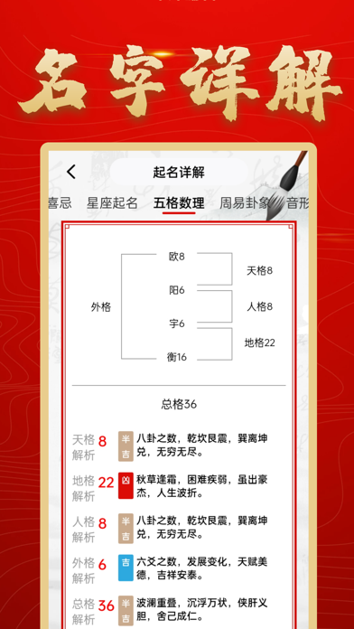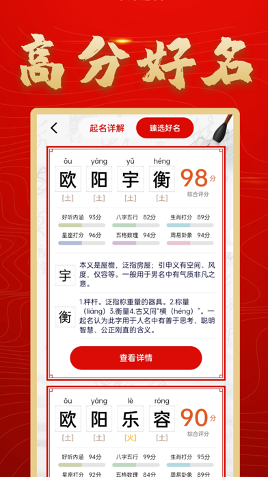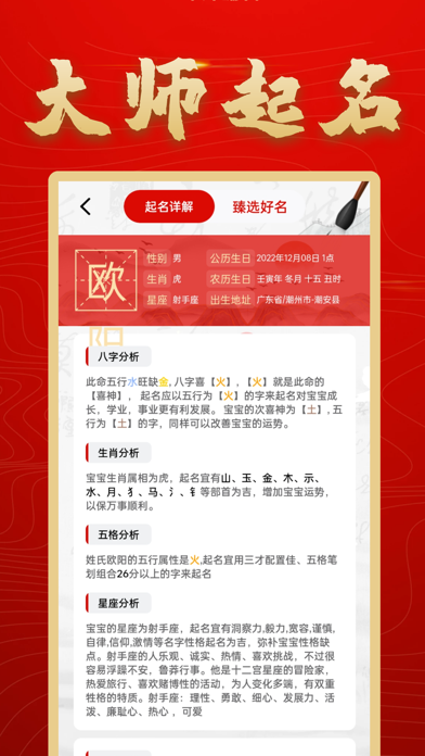 周易起名传统国学文化,精心打造大师起名,我们的宗旨就是让起名变的更简单。 只需要这款起名大全APP即可解决给孩子起名、宝宝起名、新生儿起名、男孩起名、女孩起名中所有难题,使用易起名取名大师你可以结合寓意起名、五行起名、星座起名、生肖起名、八字起名、诗词起名、姓别起名、五格起名、国学起名、科学起名等等,并且可以获取高评分和有寓意的名字。 周易起名取名大师相比一些起名软件如:易经起名取名、易起名、周易起名、起名多多、衍心国学起名取名字、起名字大师、熊猫起名宝宝取名字软件、宝宝起名吉名、高吉起名取名字、如意宝宝起名取名会更专业融入了古今具有中国特色的传统文化,更适合国人起名的一款APP软件。 强大的起名功能 【起名大全】综合考虑传统汉字美感,生肖、音律、音调、笔画、生辰五行、易学数理八大维度,结合名字属性、传承易经、生辰、星座等传统文化,对事业、婚姻、健康、爱情、未来、家庭、学业等多方面分析起名; 【起名宝典】高分名字一般来源于《诗经》、《楚辞》、《五代·花间集》、《五代·南唐二主词》、《唐诗》、《宋词》、《经典名句》、《成语典故》,易起名取名大师还结合了五行、命理、运势国学文化、生辰、五行喜忌神、卦象、生肖喜忌、诗词歌赋、流行/重名程度、名字音律还运用了AI技术分析辞海、康熙字典、古籍诗词等进行综合筛选起名; 【起名分析】利用中国传统文化,并结合现代大数据手段为宝宝起名,好听又好读,高分又吉祥; 【起名详解】综合字形结构,音律音调,音形意蕴全方面详细,依照传统文化,为2022年新生儿小孩起名字,高分名字、好听名字,吉祥名字任你挑选; 【起名不求人】输入名字,一键查询全国同名率,知己知彼,让自己的名字够独特,够给人印象深刻; 【起名大师指导】周翰民中国易学文化协会高级专家,国学起名资深专家,二十年前专注起名,改名,一对一起名,100%纯人工测算起名,起名客户满意度达99%。 周易起名取名大师是值得你拥有的一款起名字、测名字、改名字、解名字、男孩起名、女孩起名、女宝宝起名、男宝宝起名的APP软件,起一个好听、好读、好写、高分,吉祥,富贵又有寓意的名字。 订阅协议:https://qmshufaa.yunxiaoguo.cn/txt/PaymentService.html 隐私政策:https://qmshufaa.yunxiaoguo.cn/txt/privacyPolicy.html优化交互体验 优化智能算法