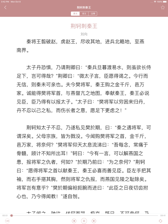 高中文言文根据人教版高中语文制作,和教学大纲保持一致。是学好文言文、学好高中语文,迎战高考必备工具。 -每篇文言文均有原文、译文、注解三部分组成,全方位学习。 -专业播音员朗读,无需联网、随时学习。 -支持变速、循环模式、上一篇下一篇切换; -支持记忆播放; -支持文字大小调节、屏幕常亮、睡眠定时。 -适配iPad、iPhone X。优化用户体验;适配iPhone 13系列!