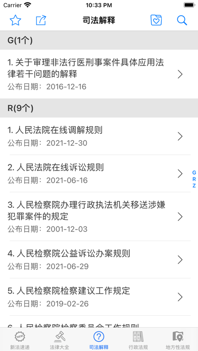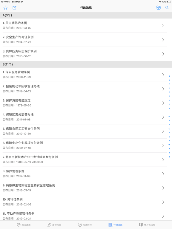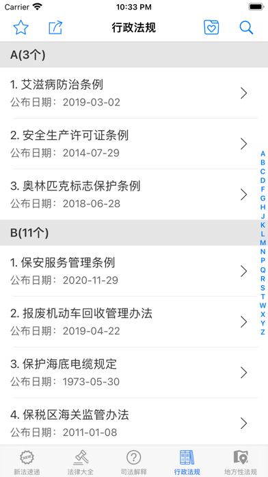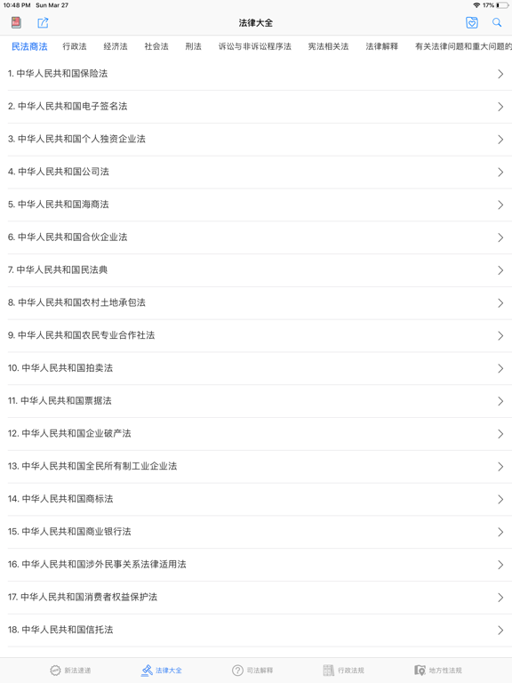 含新法速递、法律大全、司法解释、行政法规、地方性法规,民法典语音朗读等板块,总计14800多部文件。文档布局已优化,适合iPhone、iPad阅读,支持打印、分享、收藏等功能。1. 支持全量搜索,不区分栏目 2. 显示所有收藏,不区分栏目