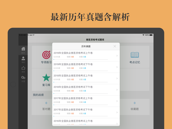 本软件为国家执业兽医资格考试兽医全科类题库的软件,精心准备了2023年最新考试题库含解析。专项章节练习,历年真题、模拟试题、考点汇总。为考试的提供了充分的复习准备,可随时随地学习练习,有效帮助顺利通过考试,学习知识通过考试必备神器! 【2023题库介绍】 基础科目 兽医法律法规与职业道德 A1、A2、A3/A4、B1试题及解析 动物解剖学、组织学与胚胎学 A1、A2、A3/A4、B1试题及解析 动物生理学 A1、A2、A3/A4、B1试题及解析 动物生物化学 A1、A2、A3/A4、B1试题及解析 兽医病理学 A1、A2、A3/A4、B1试题及解析 兽医药理学 A1、A2、A3/A4、B1试题及解析 兽医微生物与免疫学 A1、A2、A3/A4、B1试题及解析 兽医传染病学 A1、A2、A3/A4、B1试题及解析 预防科目 兽医寄生虫学 A1、A2、A3/A4、B1试题及解析 兽医公共卫生学 A1、A2、A3/A4、B1试题及解析 临床科目 兽医临床诊断与内科学 A1、A2、A3/A4、B1试题及解析 兽医外科与手术学 A1、A2、A3/A4、B1试题及解析 兽医产科学 A1、A2、A3/A4、B1试题及解析 中兽医学 A1、A2、A3/A4、B1试题及解析 临床应用科目 猪疾病临床诊断和治疗 A1、A2、A3/A4、B1试题及解析 鸡疾病临床诊断和治疗 A1、A2、A3/A4、B1试题及解析 牛、羊疾病临床诊断和治疗 A1、A2、A3/A4、B1试题及解析 犬、猫疾病临床诊断和治疗 A1、A2、A3/A4、B1试题及解析 兔、马、貂、蜂、蚕等动物疫病的临床诊断和治疗 A1、A2、A3/A4、B1试题及解析 最新国家执业兽医资格考试模拟试卷7套(共2800道 ,带解析) 【历史真题】 2022年全国执业兽医资格考试真题 2021年全国执业兽医资格考试真题 2020年全国执业兽医资格考试真题 2019年全国执业兽医资格考试真题 2018年全国执业兽医资格考试上午卷 2018年全国执业兽医资格考试下午卷 2017年全国执业兽医资格考试上午卷 2017年全国执业兽医资格考试下午卷 2016年全国执业兽医资格考试上午卷 2016年全国执业兽医资格考试下午卷 2015年全国执业兽医资格考试上午卷 2015年全国执业兽医资格考试下午卷 2014年全国执业兽医资格考试上午卷 2014年全国执业兽医资格考试下午卷 2013年全国执业兽医资格考试上午卷 2013年全国执业兽医资格考试下午卷 2012年全国执业兽医资格考试上午卷 2012年全国执业兽医资格考试下午卷 2011年全国执业兽医资格考试上午卷 2011年全国执业兽医资格考试下午卷 2010年全国执业兽医资格考试上午卷 2010年全国执业兽医资格考试下午卷 2009年全国执业兽医资格考试上午卷 2009年全国执业兽医资格考试下午卷 【功能介绍】 1、章节专项练习:章节专项强化练习,并可手动将易错或未牢固掌握的题加入收藏,以便反复练习。 2、最新模拟押题:最新模拟试题含解析。 3、历年真题:2009-2022年全国执业兽医资格考试试卷真题及答案详解。 4、考点汇总:最新必考考点汇总。 5、错题库:可自动加练习过程中错题加入收藏,以便反复练习。 6、收藏夹:可在练习过程中自行收录题目到收藏夹,形成自己的小题库,针对性练习,提高通过率。 7、安装后可离线浏览,不用联网也可以浏览,速度快,无广告。 8、定期更新题库。修复BUG和新增试题。