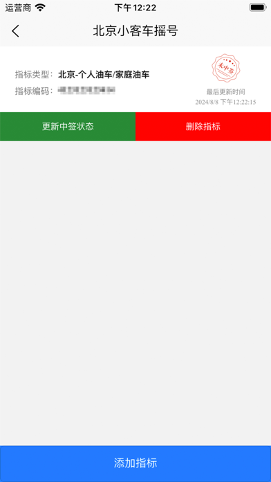 【产品简介】 全国小客车调控查询系统,方便用户一键查询,无需每次复制比对指标号。 【产品特色】 支持家庭版:查询多人是否中签,提前录入,一键查询。 【支持城市】 北京、杭州、深圳、广州、天津Fix bugs