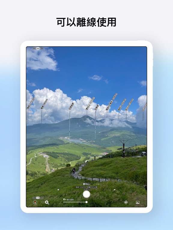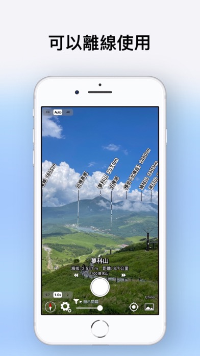 使用 iOS 设备的相机拍摄山峰时,会显示山顶的名称、海拔和距离。 您可以在 360 度全景 AR 视图中识别所有山峰的名称。 所有功能均可免费使用。 感谢大家的支持,我们在国内外所有平台上的下载量已突破250万。 特征 - 它包含了全世界近一百万座山的数据。 - 它使用三维坐标和陀螺仪来显示山顶的名称,即使你倾斜相机。的显示,也能方便检查。 - 三维地形是半透明显示的,所以很容易与山体的实际形状进行比较,并检查山顶的位置。 - 当你将iOS设备指向下方时,视图会切换到从天空俯瞰的3D视图。 - 你可以查看从地图上指定的任何位置都能看到的地形和山脉的名称。 - 你可以拍摄一张带有山峰名称的照片,并通过SNS或电子邮件分享。 - 上、下、左、右滑动AR显示屏,可以调整山峰名称显示的位置。 - 可以在拍摄照片后调整峰名显示的位置。 - 你可以导入用其他应用拍摄的照片,并添加峰名。 ※ 如果方向不正确(例如总是显示北方),如果您的iOS设备上有盖子 如果外壳上有传感器,请取下它。盖子上的金属或磁铁可能会干扰传感器,导致传感器失灵。 Terms of Service https://www.apple.com/legal/internet-services/itunes/dev/stdeula/已更新软件库。 新增了檸檬彗星的軌道顯示。 纠正了语言本地化。 已改进用户界面。 还做了其他小的修正。