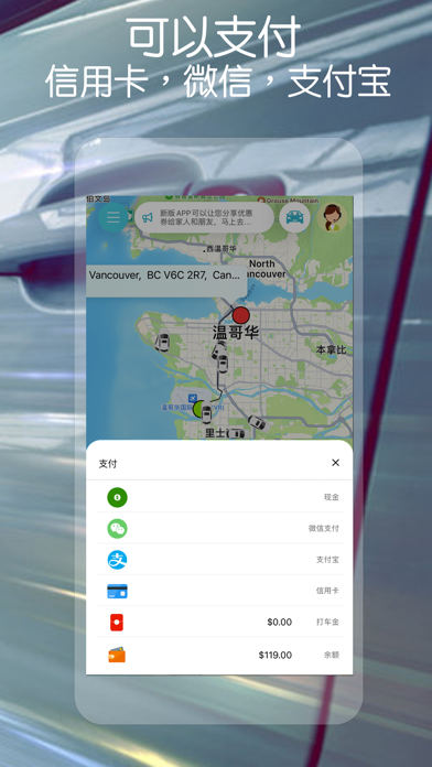 U滴快车 Udi Ride:是最新最受欢迎的华人打车平台,我们让乘客出行更方便,更节约,更加安全~ 打开APP一键叫车:随叫随到,机场接送,还可以提前预约,时间不紧张,不怕迟到! 司机都是华人:讲相同的语言更好沟通,更加亲切~ U滴快车除了打车出行,还有跑腿,代驾,和搬家服务,我们24小时在线准备接驾。 APP用起来相当简单:车费只按固定路程计算,堵车不计时间不加钱!您还可以支付现金,信用卡,支付宝,或者微信支付! 友善的司机,5星级的服务,车费比出租车便宜,深入乘客的心,让亲爱的海外华人同胞,留学生和中国游客出行更方便,更节约,更加安全! 马上下载APP吧!-修复错误,更新