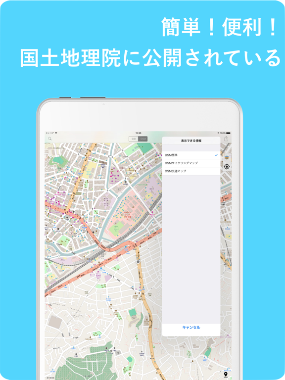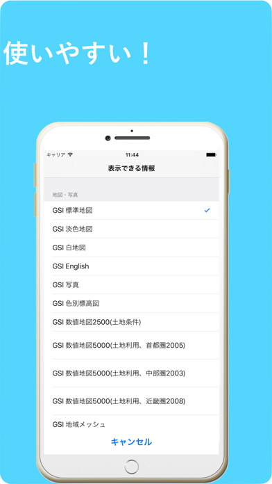 这是一个用来显示日本地理院地图的应用。使用该应用同时意味着同意了日本地理院关于内容使用的相关协议。 详情请参阅下面的链接: http://www.gsi.go.jp/kikakuchousei/kikakuchousei40182.html 功能特征: 1,基本可以利用日本地理院公开的所用地图种类。 2,可以在程序内直接打开Apple Map或者Google Map提供的交通路线功能。 3,可以直接查看OpenStreetMap的内容。 4,可以进行距离和面积的测量:选择功能后,点击红色的大头针按钮试试看。 5,详细画面:显示所在地,海拔高度等信息,还可以填写日志和选择照片(设备中照片存在的话),长按照片,可见其删除。 6,书签功能:可以在详细画画把该位置信息添加到书签。 7,背景地图的选择和透明度的设定。 8,追踪模式下的路径保存功能。 9,保存地图到当地设备。 注意: 1、该程序需要在互联网的环境下使用。 2、根据互联网的通信状态不同,显示缓慢的情况会有可能发生。 免责事项 1、不承担用户利用该应用所造成的所有后果。 2、如果提供地图服务的机构关闭或停止了服务,该应用与之相关的功能也同样无法使用。Bug的排除。