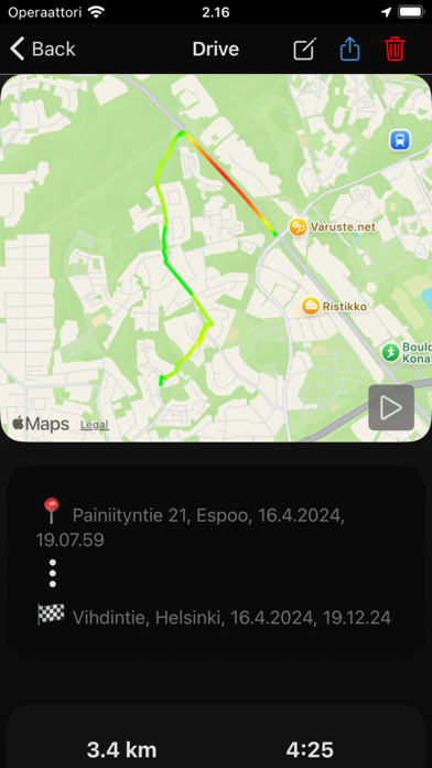 主要功能: GPS速度测量:使用GPS实时追踪速度,适用于任何旅行模式。 加速度测试:从0至100公里/小时的精确测试,以评估车辆性能。 数据记录:保存并回顾每次旅行的速度、加速度和距离数据。 旅行分析:获取详细洞察,包括行驶距离、平均速度和最高速度。 多种表盘选项:选择模拟、数字和混合表盘设计,以个性化显示。 路线映射:在每个点显示速度数据,可视化您的旅行路线,增强性能分析。 使用条款: https://www.apple.com/legal/internet-services/itunes/dev/stdeula/-Bug fixes