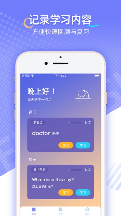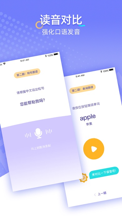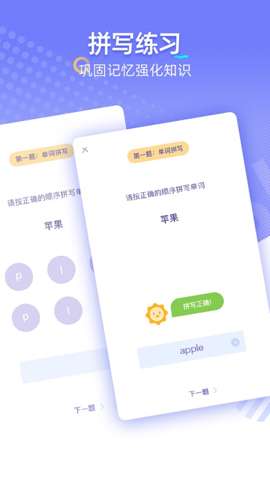 每天10分钟,你就能轻松成为英语达人 无论你是英语学习的初学者,还是英语学习遇到瓶颈的学生,针对不同阶段的学习者,提供了词汇、句子、口语等英语学习重点方面和学习技巧 适用于 提升英语口语能力的学习者 提高中高考、四六级等考试成绩的学生 学习英语的宝爸宝妈 特色: 入门词汇:基础单词学习 语法句子:基本语法听力练习 复习练习:拼写、朗读,巩固记忆,快速掌握基础日常词汇&句子 打卡签到:每日打卡签到,记录自己的学习轨迹 英语入门提高技能必备应用,学习神器 VIP自动订阅服务说明 1、订阅服务: VIP连续包月$3.99,包年$25.99 2、订阅价格:以应用内套餐价格为准。 3、付款:用户确认购买并付款后计入iTunes账户 4、苹果iTunes账户会在到期前24小时内扣费,扣费成功后订阅周期顺延一个订阅周期 5、如需取消订阅,请打开苹果手机“设置” --> 进入“iTunes Store 与 App Store”-->点击 “Apple ID”,选择"查看Apple ID",进入"账户设置"页面,点击“订阅”,选择 VIP 取消订阅。如未在订阅期结束的至少24小时前关闭订阅,此订阅将会自动续订。 隐私协议:https://hmz.baklib.com/fa36/21eb 服务政策:https://hmz.baklib.com/39d3/245e新增配对练习,知识掌握更牢固 优化产品细节,修复已知问题,给您更舒适的使用体验
