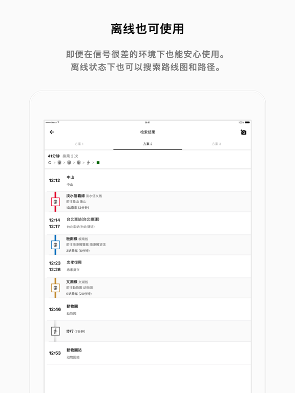 NAVITIME Transit 是在世界上使用的免费换乘指南服务。 只需点触路线图,即可方便地搜索全球的换乘信息。 NAVITIME Transit是一款可以一边看路线图,一边搜索路线的免费App,可在您海外旅行或出差时提供安全放心的交通信息。通过换乘搜索,可确认到达目的地所需的时间、换乘站、乘车路线的停车站及各种交通信息。 NAVITIME Transit: 只需选择想要去的国家并点击下载,即可使用NAVITIME的路线图/铁路信息搜索世界各地的路线。 您可以在路线图画面查询最近的车展,并且可以同时确认车站周边和所在地,实现从当时所处地点到目的地之间的顺利转移。另外,你还可以通过街景确认当地的实际样貌。 可查询的交通方式有电车、地铁、巴士、渡轮、飞机(国内线),可以在没有信号时离线使用。 支持国家 亚洲 - 柬埔寨:金边 - 中国:上海/广州/成都/大连/杭州/北京/沉阳/青岛/天津/武汉 - 香港·澳门 - 印度:孟买/德里 - 印度尼西亚:雅加达 - 韩国:首尔/釜山 - 日本:东京 - 缅甸:仰光 - 马来西亚:吉隆坡 - 菲律宾:马尼拉 - 新加坡 - 台湾:台北/高雄 - 泰国:曼谷 - 越南:河内/胡志明市 欧洲 - 比利时:布鲁塞尔 - 芬兰:赫尔辛基 - 法国:巴黎/图卢兹/马赛/里昂/雷恩 - 德国:柏林/法兰克福/慕尼黑/汉堡/杜塞尔多夫 - 意大利:罗马/米兰/都灵 - 挪威:奥斯陆 - 西班牙:巴塞罗那/马德里 - 瑞典:斯德哥尔摩 - 瑞士:苏黎世 - 英国:伦敦 美洲 - 加拿大:温哥华 - 墨西哥:墨西哥城 - 美国:纽约/芝加哥/波士顿/华盛顿特区/旧金山/休斯顿/洛杉矶/圣地亚哥/西雅图/圣荷西 大洋洲 - 澳大利亚:悉尼 [关于高级会员] ■详细信息 通过同意使用条款,将向您的iTunes帐户收取费用,您将能够使用所有功能。 我们使用自动重复计费功能(自动可再生订阅)。 自动更新的费用将从有效期结束之前的24小时开始,直到有效期结束。 ■如何取消自动更新 要取消/设置自动续订,请转到“设置”>“点击您的名称”>“订阅”。 您可以在有效期结束之前至少24小时选择“取消订阅”来停止自动续订。 ■使用条款 https://static.aws.navitime.com/term-of-service/index.html ■隐私政策 https://static.aws.navitime.com/privacy-policy/index.html- We have started integration with the European transportation comparison service Omio. You can now book and purchase select train tickets in the UK, Italy, and Spain directly from the route search.