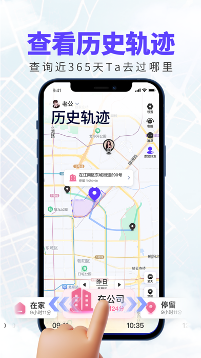 旦旦守护提供高精度的手机实时定位追踪和轨迹记录服务,已为超百万用户解决异地牵挂、家庭守护、夜归安全等问题,让你随时掌握亲友动态,安心又放心。 软件主要功能亮点: 1.高精度定位:精确到门牌号,后台持续运行,低耗电不发烫,定位不掉线、不漂移。 2.实时位置共享:随时查找亲友实时位置、去过哪里、停留多久、出行方式(步行/骑行/乘车等)。 3.历史足迹记录:全自动保存近365天足迹,支持按日查询,清晰查看移动轨迹。 4.围栏提醒:设置家、公司、学校、等地点,到达或离开自动报备通知,支持微信同步提醒。 5.设备状态查看:实时显示电量、Wi-Fi、信号强度、手机型号,出门在外也能全面掌握亲友状态。 6.永久免费定位2位好友:基础功能不收费,无广告无套路,真正可靠好用的手机定位神器。 适用场景: 1.情侣定位器:异地恋也能“我和你”实时Bind, 同步心动日常甜蜜轨迹,情侣地图永不断线。 2.家人守护:就像“小天才电话手表”一样,在这里阳光守护爱人、孩子、老人的安全。 3.独居/夜归者:实时共享位置,远程安心寻找,安全守护更及时。 4.留学生/外出务工者:跨省跨国无障碍查找,亲密守护更甜蜜。 【旦旦守护】是对所爱之人的一份承诺,也是你给自己的安心选择。 立即下载,在这里定位,让『旦旦守护』成为你值得信赖的专属守护助手! 备注:为保障用户隐私,双方需安装并授权同意后才能共享位置。优化用户体验。