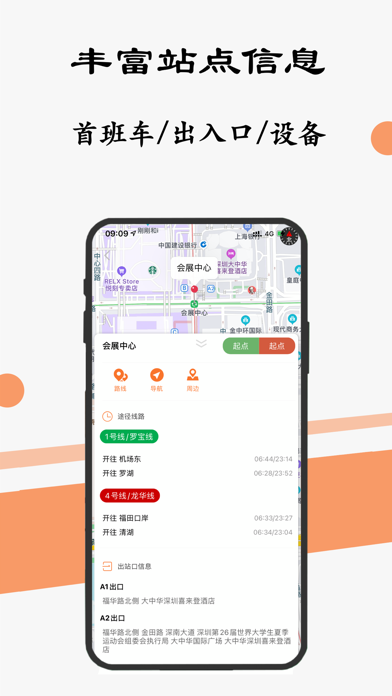 深圳地铁通为了在深圳上班、旅游出行便捷,而精心设计的一款精美实用的导航工具。它支持实时线路站点更新、出行线路规划、准确的下车到站提醒、及周边设施搜索等功能,它将是您出行的好帮手。 APP给用户带来许多特别实用、简洁、超级好用的功能。 【实时更新】随着地铁线路的不断开通,app支持线路实时更新,出现放心乘坐。 【线路规划-到站提醒】只要设置开始站点与结束站点,能快速精准的规划出最实惠最快的线路,能准确定位出到达的哪个站点,并在中转站或终点通过语音提醒用户下车。 【线路站点搜索】提供快速便捷的搜索最新线路及站点的功能 【站点详细信息】提供丰富的站点信息,包括首末班次时间、出入口周边信息及设施等,让您出入更方便。 【周边兴趣点搜索】根据站点,能搜索站点的周边生活、娱乐、医疗、学校、商城等设备环境,包括距离,电话地理位置等。 【智能导航】提供导航线路规划,以及全方面的智能导航,驾驶与步行,去哪里,一键导航,方便便捷。 深圳地铁通希望能给深圳生活的小伙们在出行的时候提供最好的帮助。
