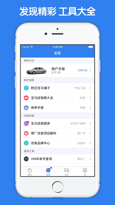 蓝天白云社是最专业、最资深的宝马资讯、宝马社区、宝马论坛、宝马改装中心。蓝天白云社是BMW宝马车友交流的最佳网络平台,最新前沿BMW宝马资讯24小时即时更新,一切尽在蓝天白云社。 在这里,第一时间获取宝马资讯,结交志同道合的车主朋友,分享您和爱车的生活点滴,精彩的活动不落幕,真诚的朋友不散场,你可以尽情释放激情,探索未知,分享喜悦! 用宝马,一个App就够了! 【保养,不当菜鸟】 了解宝马全方位的保养维修知识, 找到早上保养晚上开走的维修店, 不再担心保养时当成门外汉, 自己能知道哪里有问题不再被坑! 【看资讯,更及时】 成为先锋队知道宝马变化的知情人, 发现一般人不知道的车内特殊设计! 快人一步的新资讯, 全方位的资讯解读, 让你成为人群中的意见领袖! 【改装,淘汰平庸】 自己改装的车没人欣赏怎么破? 想改装找不到好的想法怎么搞? 店员是新手不想让他来怎么办? 一线的改装样式任你挑选, 从新手到高玩各阶级策略, 让你的爱车变得与众不同! 【找维修,更专业】 帮你挑选更专业的宝马维修保养店铺, 为你节省更多的时间和精力, 维修被坑,我与你一起维权! 【看视频,实用百科】 你不知道的宝马小秘密, 你还没解决的宝马通病答疑, 只要三分钟,看视频就能搞定! 【零件查询,靠谱】 专业零部件查询,一秒出结果! 不再让山寨零件损害你的爱车! 不让你的财物和心情受到影响! 【车友工具箱,一键应急】 有问题,更快联速系售后客服! 出事故,更简洁的判定和解决! 买保险,更靠谱的购买与保证! 【宝马专业查询,车架号,零部件】 VIN车架号,查出厂详细配置! ETK零部件,原厂零件查询! Manual说明书,全系车说明书都有! Video看视频,新车主操作培训大全! 【宝马精英社区,尽在蓝天白云社】 一个只属于宝马精英的多彩社区! 更多精彩内容,快来下载App使用体验吧!1、适配iPhone XS 、 iPhone XS Max 和 iPad Pro 2、修复一些bugs