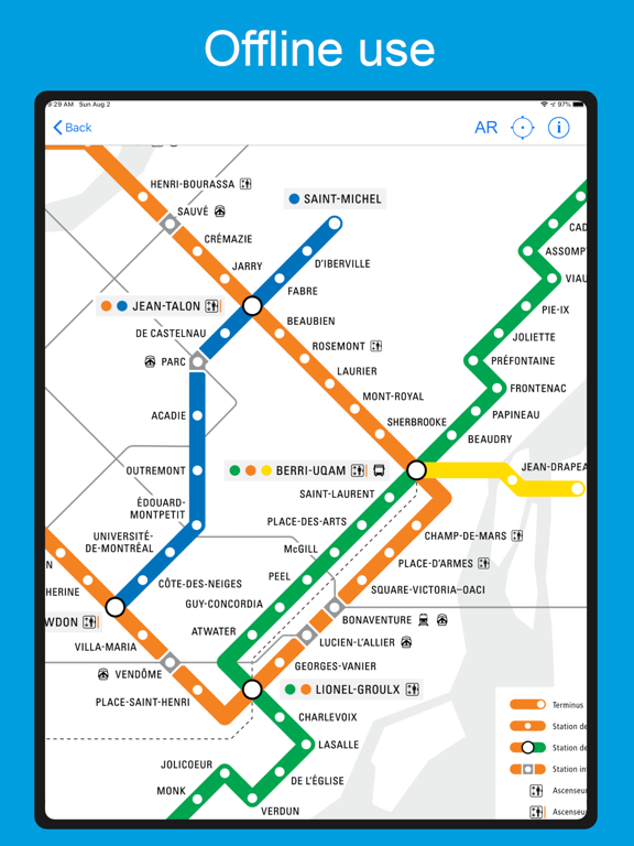 加拿大地铁地图,简单和离线使用! 显示卡尔加里,埃德蒙顿,汉密尔顿,蒙特利尔,渥太华 - 加蒂诺,魁北克市,多伦多,温哥华地铁地图,只需点击一下,无需访问互联网。 以下是地图的主要特征: - 一键点击:全屏地图 - 双击:简单缩放 - 滑动一根手指:在地图上移动 - 滑动两根手指:完全变焦 - 用户位置 - AR Metro Premium是每月定期订阅。在免费试用期结束时(7天),您将自动通过App Store向您收取金额(14.99USD)。除非在当前期间结束前至少24小时取消,否则每月订阅会自动续订。您的帐户将在当前期间结束前24小时内收取续订费用。免费试用期的任何未使用部分将被没收。您可以在App Store中管理您的订阅。 Terms of use: https://ar-code.co/apps/metro/terms.html Privacy policy: https://ar-code.co/apps/metro/privacy.html- Improvements for speed and reliability