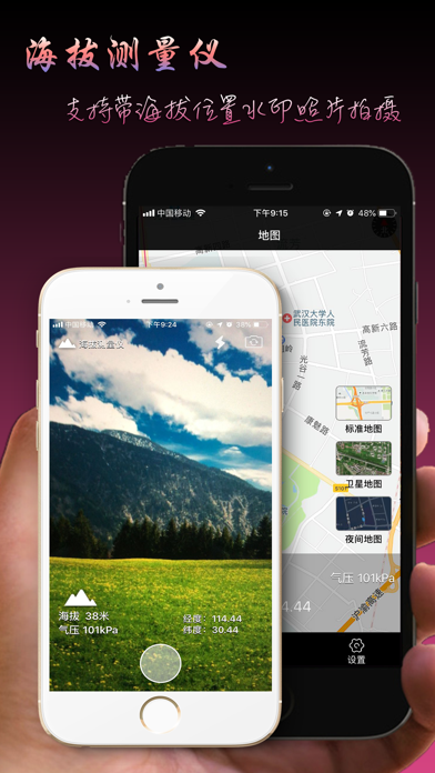 海拔测量仪是一款外出旅游、户外达人必备的APP,拥有非常强大和准确的GPS定位功能,让你以最快的速度准确实时的获取到当前位置的的海拔、GPS位置、气压、经纬度坐标等信息,并且还内置指南针功能,这将是您进行户外活动必备的实时海拔测量应用。例如:远足,散步,滑雪,攀岩,山地自行车,徒步旅行,登山,天气,指南针,野营,户外,背包,飞机飞行高度等等。 【特色功能】 1. 海拔高度表:实时测量海拔,无需网络可以准确测量所在地的海拔和经纬度; 2. 指南针:内置指南针功能,让你更快的获取所在地的方向以及经纬度信息; 3. 地图导航:支持查看地图功能,当前位置的坐标和海拔信息并在地图上显示; 4. GPS定位:gps实时定位,使海拔高度测量信息更为快速和精准; 5. 水印相机:支持水印拍照,照片上会以水印记录拍照时所处的海拔、气压、以及经纬度信息。 【VIP会员连续包月说明】 您可以订阅以获得海拔测量仪App的包月会员权益。 一旦购买确认后,款项将直接从iTunes账号扣除 订阅期间您可以试用所有权益 订阅会自动续期同之前的价格和期间(一个月),除非在当前订阅期结束前至少提前24小时关闭自动续期 当前订阅期结束前的24小时内会根据您选择的期间(每月)从账号扣除续期费用 购买后,用户可在账号设置中管理订阅和关闭自动续期。 在有效订阅期间,无法取消当前订阅 "您可以透过iTune账户的订阅设置在免费试用期间来取消订阅。 请务必在订阅结束前24小时完成,以避免被收取费用。更多讯息请至:http://support.apple.com/kb/ht4098 " 您可以通过iTunes账号设置来关闭自动续期,但是您无法在有效订阅期间取消目前订阅。 免费试用期间任何未使用的部分将在试用到期后作废。 服务条款和隐私政策请至以下链接: 隐私政策: http://didiapps.com/assets/agreement/altitude_privacypolicy_cn.html 服务条款: http://didiapps.com/assets/agreement/altitude_subscription_cn.html- 优化功能,适配最新iOS系统;