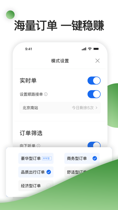 优e出行-高德免佣联盟核心平台,智能优先派单,专业、便捷高效的网约车司机接单必备工具 1【平台更安全】合规可靠,资金更安全;让车主工作中拥有足够的安全感 2【接单更自由】轻松设置接单模式,预约单、机场订单、返城订单、特价单、连环单、快走单等多场景订单任你选择 3【导航更精准】高德地图智能规划最优路线,优化主辅路、高架桥等场景导航,接送驾路线更合理,更省心 4【结算更便捷】平台垫付结算,每周提现到支付宝,佣金秒到账,生活无忧 5【服务更专业】7*24小时客服在线为您提供更专业更高效的订单售后服务,为您排忧解难 6【定价更合理】综合考虑市场因素,合理定价,在确保订单数量的同时带来更高价值订单 7【奖励更丰富】新司机首单奖、推荐奖、冲单奖、时长奖、免佣福利 欢迎您使用优e司机聚合版,我们将和您一起开启将温暖、安全护送的出行服务,为每个出行人提供更优质、更专业、更贴心的乘车服务体验。修复已知问题,新增一键登录功能。