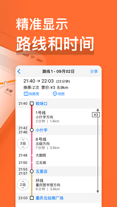 可能是史上最优秀的重庆地铁App。 1. 2024最新数据 精美线路图,精准的地铁信息。 2. 路线查询 选择出发,到达,时间,即可获得多种换乘方案。包含:路线,时间,票价,距离。 3. 离线工作 无需连网即可完美工作。 4. 多语言支持 English, 简体中文, 繁體中文, 日本語 微信公众号:MetroManApp 邮箱: metromanchina@gmail.com ---- VIP特权 • 无广告打扰 • 畅享 定制款 线路图主题 • 管理查询记录 访问 https://www.metroman.cn/md/faq.html,详细了解 MetroMan VIP版 ---- 自动续订条款: * 3 种订阅选项可供选择: - 月度订阅,只需 $0.99 USD; - 季度订阅,只需 $1.99 USD; - 年度订阅,只需 $5.99 USD. * 该定价和“Apple's App Store Matrix”在其他货币所确定的价格区间相同。 * 付款将在购买确认后支付到iTunes帐户。 * 续费服务会在到期前1天内扣费,扣费成功后订阅自动顺延一个订阅周期。 * 账户将在本期结束前24小时内收取续期费用,并确认续期费用。 * 可在iTunes account设置中取消订阅。 隐私政策: https://www.metroman.cn/md/privacy.html 服务条款: https://www.metroman.cn/md/terms.html1. 支持iOS 18 2. 更新地铁数据至2024年10月 3. 修复问题和性能优化