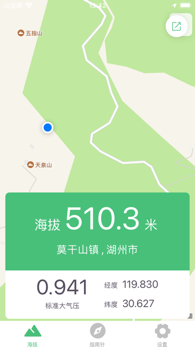 查看你的高度或海拔,还可以设置各种漂亮的背景。 非常适合远足等户外活动。 内置海拔表,还可以根据海拔换算气压. 一个简单而整洁的界面展示如下内容: 1. 海拔计 2. 纬度 3. 经度1. 修复登录问题