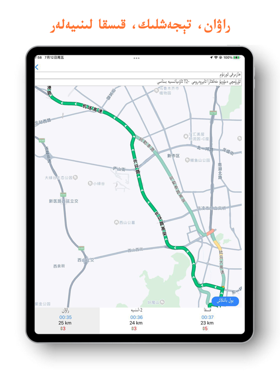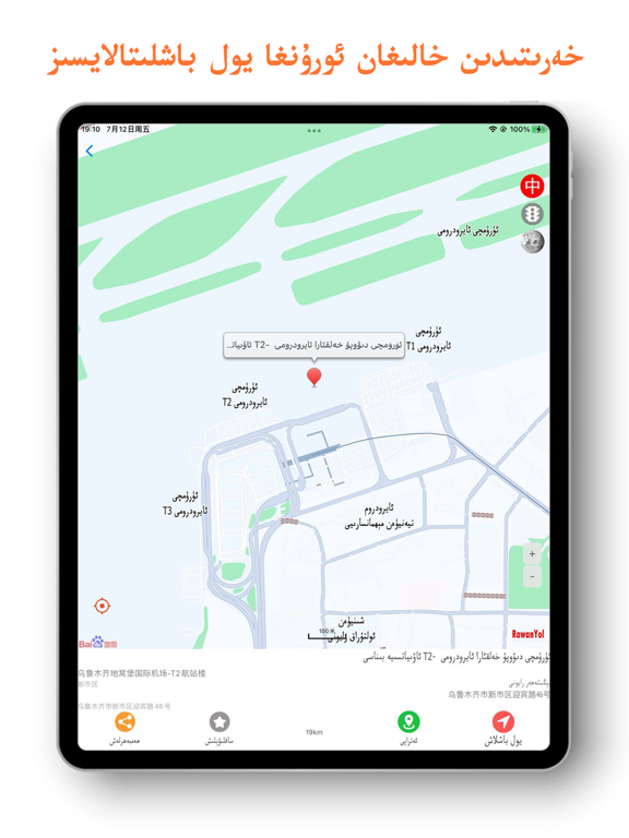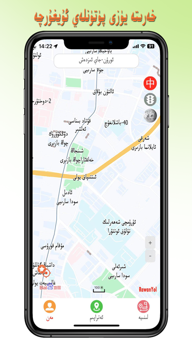 RawanYol热万路导航APP,提供中文和维语地图地点检索和导航线路规划,检索结果维汉双语显示。 Uyghur cha yol baxlax harida app. راۋانيول يولباشلاش سىستېمىسىنىڭ ئۇيغۇرچە خەنزۇچە قوش تىللىق خەرىتە ئورۇن-جاي ئىزدەش، يولباشلاش لىنىيە پىلانلاش، ۋىشىن دىڭۋېيدىن يول باشلىتىش قاتارلىق ئىقتىدارى بار.此版本纠正了定位信号不好时提示授权的问题。 修改了一些界面,比如文字不再太靠近屏幕边缘。
