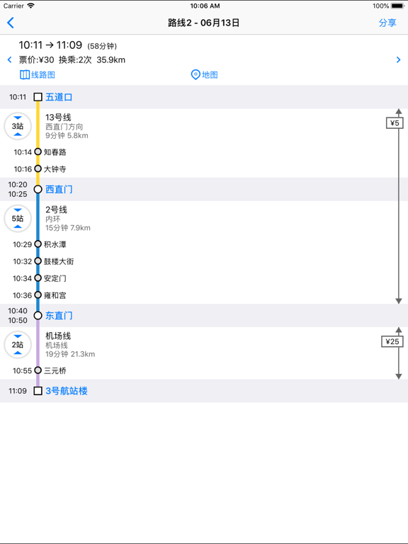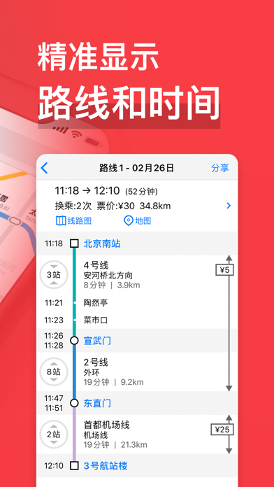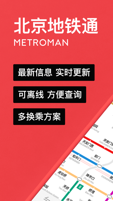 可能是史上最优秀的北京地铁App。 1. 2025最新数据 精美线路图,精准的地铁信息。 2. 路线规划 简单高效的路线规划工具,提供详细的路线、时间和票价信息。 3. 无需联网 无需互联网连接即可使用。 4. 支持11种语言 English, 简体中文, 繁體中文, 日本語, 한국어, Русский, Français, Español, Deutsch, Português, Italiano 5. 覆盖53个城市 北京, 上海, 广州, 深圳, 香港, 澳门, 台北, 台中, 高雄, 长春, 长沙, 常州, 成都, 重庆, 滁州, 大连, 东莞, 佛山, 福州, 贵阳, 海宁, 杭州, 哈尔滨, 合肥, 呼和浩特, 济南, 金华, 昆明, 兰州, 洛阳, 南昌, 南京, 南宁, 南通, 宁波, 青岛, 绍兴, 沈阳, 石家庄, 苏州, 太原, 台州, 天津, 乌鲁木齐, 温州, 武汉, 芜湖, 无锡, 厦门, 西安, 许昌, 徐州, 郑州 微信公众号:MetroManApp 邮箱: metromanchina@gmail.com ---- ** Premium特权 ** • 无广告打扰 • 畅享 定制款 线路图主题 • 管理查询记录 访问 https://www.metroman.cn/md/metroman_faq_cn.html,详细了解 MetroMan Premium版 ---- ** 自动续订条款 ** * 3 种订阅选项可供选择: - 月度订阅,只需 $0.99 USD; - 季度订阅,只需 $1.99 USD; - 年度订阅,只需 $5.99 USD. * 该定价和“Apple's App Store Matrix”在其他货币所确定的价格区间相同。 * 付款将在购买确认后支付到iTunes帐户。 * 续费服务会在到期前1天内扣费,扣费成功后订阅自动顺延一个订阅周期。 * 账户将在本期结束前24小时内收取续期费用,并确认续期费用。 * 可在iTunes account设置中取消订阅。 ** 隐私政策 ** https://www.metroman.cn/md/metroman_privacy_cn.html ** 服务条款 ** https://www.metroman.cn/md/metroman_terms_cn.html1. 更新地铁数据至2025年8月 2. 修复问题和性能优化