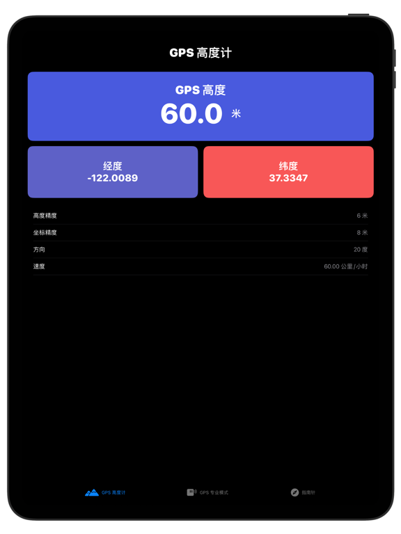 GPS高度计 户外高精度版 1. 界面清晰易读,字体大,适合在户外环境下方便阅读。 2. 带GPS精度信息,一些信息尽在掌控中。 3. 支持指南针功能。 4. 支持夜间模式,方便在夜间暗光环境下使用。 5. 低电量消耗,节省宝贵户外手机电量。 无内购,无任何试用期之类的扣费套路。Fix minor issue.