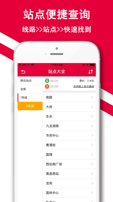 南昌地铁App,一款专业地铁出行智能助手。拥有2019南昌最新地铁线路图,查询推荐最优换乘线路,最新站点信息全掌握(含周边)等地铁出行信息和功能。 ——【应用特色】—— 最新地铁线路:截止2019年,南昌地铁共计开4条线路,后续APP线路将更根据实际情况更新。 最优换乘线路:时时监控地铁运行状态(通畅或拥堵),查询推荐最优换乘线路,以及乘坐的时间,票价,距离。 便捷线路分享:支持线路查询结果,文本/图片保存到本地,或分享到第三方平台。 线路/站点收藏:换乘线路查询结果以及站点收藏。 详细站点信息:站点首末班车时间,车站服务设施(卫生间和电梯等)、出入口信息等。 ——【所有线路】—— 涵盖地铁线路:2号线、3号线、11号线、13号线。 ——【联系我们】—— 南昌地铁App,接入南昌地铁信息中心,所有信息仅供参考,产品处于开发阶段,可能存在部分未完善细节,欢迎广大用户反馈使用问题和给我们建议,我们会努力做最好的南昌地铁出行助力。联系邮箱:app20190304@qq.com
