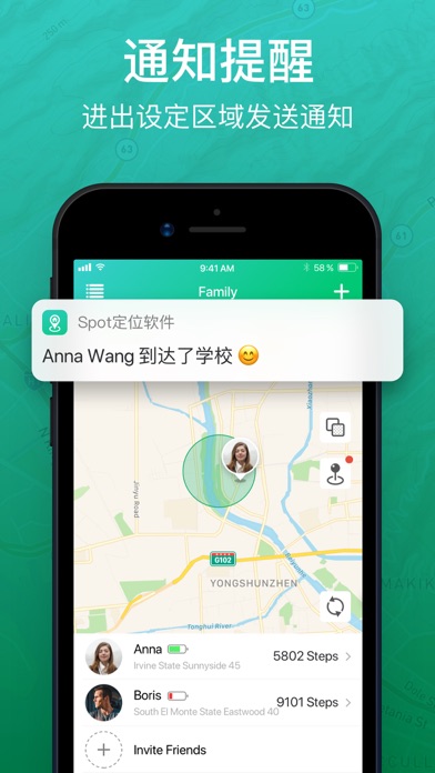 Spot是一款定位追踪软件,通过手机的GPS功能,让您时刻掌握家人和朋友的行踪。特别是对于有老人或孩子的家庭来说,Spot能够确保您不再担心他们会走丢。 该应用的位置管理功能允许您设置特定区域,如学校、家、超市等。每当您的家人或朋友进入或离开这些区域时,您都会收到通知提醒,省去了频繁查看位置的麻烦。 除了位置信息外,Spot还记录家人和朋友的日常活动数据,如步数、体重和血压等。这种持续的健康监测让您能够关注他们的健康状况,并鼓励他们保持活跃,拥有更健康的生活方式。 ①精准定位:Spot针对中国地图进行了优化处理,定位更加精准可靠。 ②消除“在哪里”的烦恼:打开应用,即可准确了解家人和朋友的位置。 ③自定义区域设置:当您的家人或朋友进入或离开指定区域时,会收到推送通知。 ④避免找人的麻烦:通过地图轻松安排见面,省去了寻找的烦恼。 ⑤足迹追踪:查看家人和朋友每天的行程轨迹。 ⑥安全保障:在紧急情况下,通过缩小搜索范围,快速找到您的家人和朋友。 ⑦步数排行榜:与朋友和家人进行每日步数挑战,促进更健康的生活方式。 Spot提供全面的定位追踪和健康监测功能,确保您的家人和朋友的安全和健康,并鼓励他们保持积极活跃的生活方式。 查看他人定位功能需经他人授权或双方同意方可使用 订阅说明 确认购买时将从iTunes账户扣款。订阅将在到期时自动续订,除非在当期订阅结束至少24小时前关闭自动续订。当期订阅结束之前24小时内,将从iTunes账户扣款进行续订。购买后,您可以在iTunes账户设置中管理订阅,或关闭自动续订。免费试用的未使用部分将在购买订阅时失效。 服务条款:https://www.taiger.fun/terms.html 隐私政策:https://www.taiger.fun/privacy.html感谢您使用Spot定位软件! 此版本修改了一些已知的BUG,提升了定位精度与频率。 Spot定位软件旨在为您提供一个与家人互动的安全健康管理工具。使用它可以时刻查看家人位置,轻松的找到他们。在家人进入设定区域会给您发送消息提醒,以便随时了解家人的动态。运动步数的PK可以激励您和家人更多的走动,运动有益健康!!!