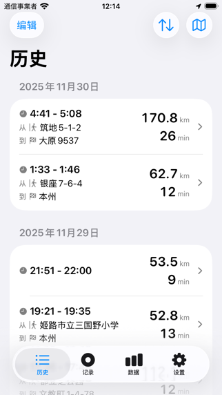 ■ 你走过的每一条路,都能在地图上看到 DriveTracker,一款记录行程并保存到地图的App。 走过的路一目了然!去过哪里、开了多远,全部记录在案。 ■ 主要功能 ・走过的路自动记录到地图 行驶路线自动记录,直接显示在地图上。一眼就能看出之前去过哪里! ・查看每次行程的详细记录 按日期或地点查找过去的记录,在地图上回顾当时的路线。"那天去了哪里?"立刻就能找到答案。 ・实时显示距离和时间 记录时实时显示行驶距离和时间。随时知道开了多远! ・支持暂停和继续 休息时暂停,出发时继续。按你自己的节奏记录。 ・分享你的行程 和朋友家人分享你的行程。从哪到哪、花了多少时间、开了多远,一键分享! ■ 用图表看数据 ・行驶数据图表化 ・行驶距离变化趋势 ・平均速度变化 ・行驶时间与停留时间占比 按日、周、月、年查看数据图表。一眼看出驾驶习惯! ・时段分析报告 今天、本周、本月、今年…任意时段分析。"这个月开了多少?"一查便知。 ・CSV导出 所有记录可导出为CSV格式,用Excel或表格软件自由分析! ■ 安心使用 ・离线也能用 没网也能记录!深山老林、信号盲区,只要有GPS就行。 ・iCloud自动同步 iPhone、iPad之间自动同步。换机也不怕丢记录。 ■ 不用打开App也能操作 ・用Siri语音操作 说"开始记录""停止记录"就行。开车时也能安全操作。 ・主屏幕小组件 在主屏幕放个小组件,一点就能开始或停止记录。不用打开App! ・锁屏小组件 锁屏界面也能放小组件。不用解锁就能开始或停止记录! ・快捷指令联动 可以在快捷指令App中使用DriveTracker的快捷指令!"连上蓝牙就开始记录""到达某地就停止记录",随你设置。 ・支持实时活动 记录时在锁屏或灵动岛显示信息。随时查看行驶距离和时间。 ■ 适合这些人 ・热爱自驾 记录走过的路,以后看着地图回忆旅途。 ・摩旅爱好者 和伙伴分享行程,记录路线为下次参考。 ・配送/业务司机 管理每日行驶里程,记录每条路线的距离。 ・喜欢数据分析 用数字了解自己的驾驶习惯,用图表直观分析。 ・旅行记录 保存旅途中的行驶路线。"那次去了哪里?"随时回顾。 使用条款: https://sbryu.com/apps/drivetracker/terms-of-use 隐私政策: https://sbryu.com/apps/drivetracker/privacy-policy 感谢使用DriveTracker! 本次更新带来以下改进: - 路线颜色现在会根据速度或海拔变化 - 新增印尼语、越南语和繁体中文的支持