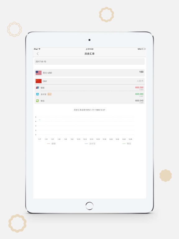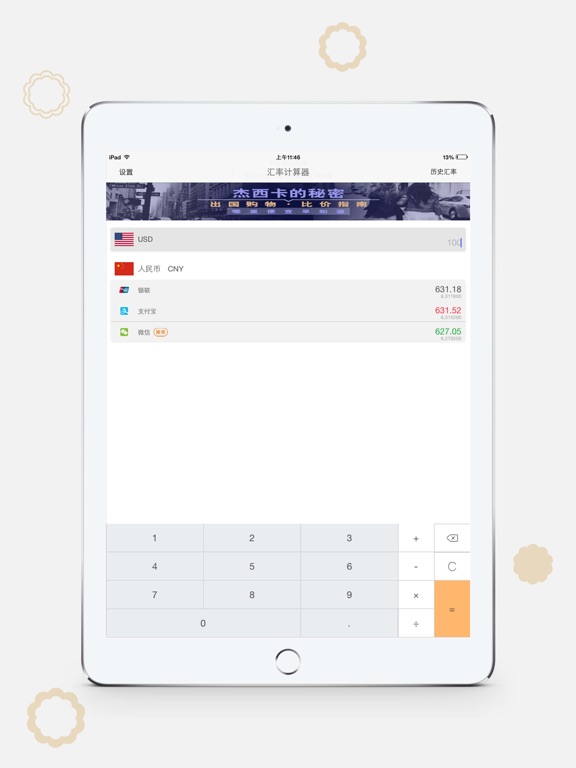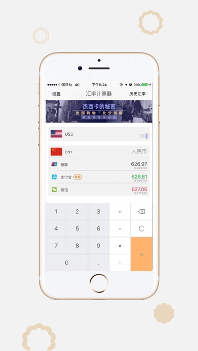 PK汇率,首家集成了支、微、银三大巨头境外支付平台汇率的实用比较工具! 覆盖约20多个全球旅游热门国家币种,兼具简易计算器功能,非常贴心方便; 只要简单地动动手指,不用别人推荐,实时透明的汇率比较就摆在您的面前,适用各种跨境支付平台的选择场景; 可查看各汇率历史曲线,各平台汇率趋势、汇率变化趋势一览无余; 联网时自动更新各平台最新汇率,非正常联网状态时也可离线使用最近一次更新汇率进行估算,非常适合境外出游使用。 下载PK汇率,省钱省到骨头里~ 注:本应用需要获取您的位置用于在"货币列表"中显示您所在国家对应的币种信息,若不允许,将无法显示所在国家币种。优化了《PK汇率隐私政策》及相关提示