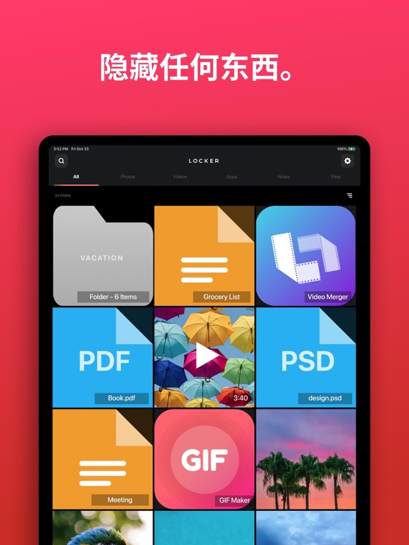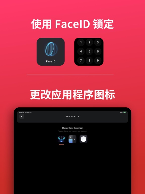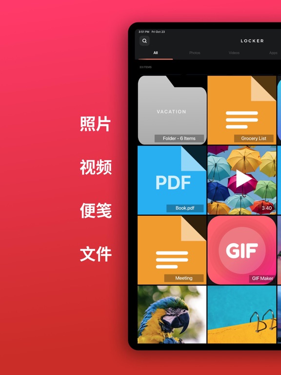通过 FaceID/TouchID 保护安全存储您的照片,视频,便签,文件和应用程序链接! • 将 Locker 的应用程序图标更改为计算器或计时器! • 设置 FaceID,TouchID 或 PIN,作为 Locker 访问保护! • 存储任何类型的文件! 保护你的: • 照片和视频:将照片和视频存储在您的 Locker 中,而不是您的照片图库 • 便签:直接在 Locker 应用程序中书写个人便签! • 文件:将任何文件存储在您的 Locker 中,只有您"自己"可以访问! • 应用程序链接:将应用程序链接添加到 Locker 中,这样您就可以从主屏幕上删除它们,但仍然可以轻松访问它们。注意:不能从设备的"应用程序库"中删除应用程序,因此无法对应用程序进行完全的密码保护。 注意:如果您选择不设置 FaceID/TouchID,一旦忘记密码,您将无法访问 Locker。如果文件丢失,我们概不负责,而且我们无法从设备的其他区域删除信息或应用程序。如果应用程序被删除,或删除的应用程序丢失/损坏,您的文件将无法恢复,除非之前对设备进行了备份。文件仅存储在您的设备上,从来不会存储在我们的服务器上,因此 Locker 开发人员无法访问这些文件。 This app includes an optional auto-renewable subscription (Premium Pass): Premium Pass beings with a free trial period, then an auto-renewable monthly subscription when trial ends. Payment will be charged to your Apple account at confirmation of purchase and will automatically renew (at the duration/price selected) unless auto-renew is turned off at least 24 hrs before the end of the current period. Account will be charged for renewal within 24-hours prior to the end of the current period. Current subscription may not be cancelled during the active subscription period; however, you can manage your subscription and/or turn off auto-renewal by visiting your Apple Account Settings after purchase. Any unused portion of the free initial period will be forfeited when you purchase a subscription. Privacy Policy: https://float.support/locker/privacy Terms of Use: https://float.support/locker/terms- 修复了收集问题