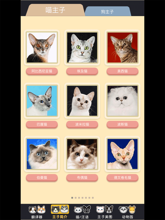 该应用出于娱乐目的,供爱宠人士娱乐使用。不提供真正的人与狗/猫的语言翻译功能。 宠物是我们身边另一个朋友,它们可以在你不开心时陪伴你,在你开心时陪你一起开心。 宠物乐园是一款可以拉进人与宠物之间距离的软件。可以带你快速了解不同品种猫猫狗狗,是铲屎官养宠的好帮手! 哪种狗狗会掉毛?狗狗平时如何饲养?哪种猫咪爱粘人?如何安全的帮猫猫洗澡?不同品种猫狗之间的差别? app内部集合了上百种不同品种的猫狗图片和与之配套的简介、生活习性,喂养护理与猫狗疾病相关的知识介绍。在这里你可以了解到宠物猫狗的科学养宠知识,让你养宠前心里有数,养宠后心中不慌。 订阅价格和条款 初级会员:1.99$/周:宠物语翻译为人语、解锁全部猫狗简介、解锁全部猫狗图片、解锁其他动画全部图片和语言、去除弹出式广告 高级会员:3.99$/月:宠物语翻译为人语、解锁全部猫狗简介、解锁全部猫狗图片、解锁其他动画全部图片和语言、去除弹出式广告 试用结束和订阅翻新 付款将在确认购买后向 iTunes 帐户收取。 除非至少在当前预订期结束前 24 小时关闭自动续订,否则订阅将自动续订。 在当期结束前的24小时你的账户将被收取续订费用,并确定续费费用。 用户可以管理订阅,购买后在用户的“帐户设置”中也可以关闭自动续订。 如果提供的免费试用期的任何部分未使用,如果用户在适用的情况下购买该部分的订阅,那么未使用部分将失效。 隐私政策PAC_URL:https://app.sparkhan.com/privacy.html 使用条款USE_URL:https://app.sparkhan.com/terms.html优化界面 调整了动画效果 修改bug