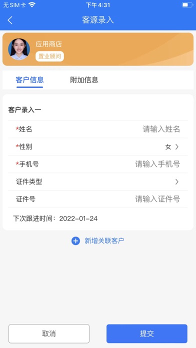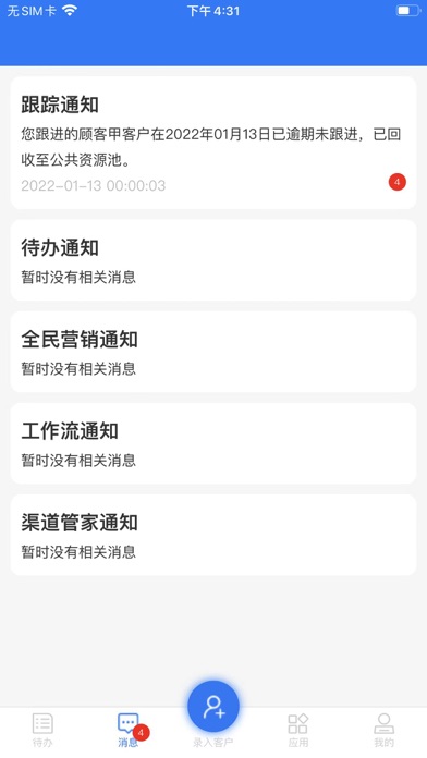 应用内待办页面,会显示结束时间前一定时间的未完成事项提醒销售人员及时跟进完成;消息通知页面会通知销售人员上级分配的新客户、即将逾期的待办事项等相关消息;可登记新客户相关信息;可在线预览各类相关数据报表,如认购明细表、签约明细表等;可查看在售楼盘剩余可售房源测算其房价,客源列表页面可以查看名下所有客户,支持增加客户跟进记录、修改客户信息等客户管理。添加房屋详情显示