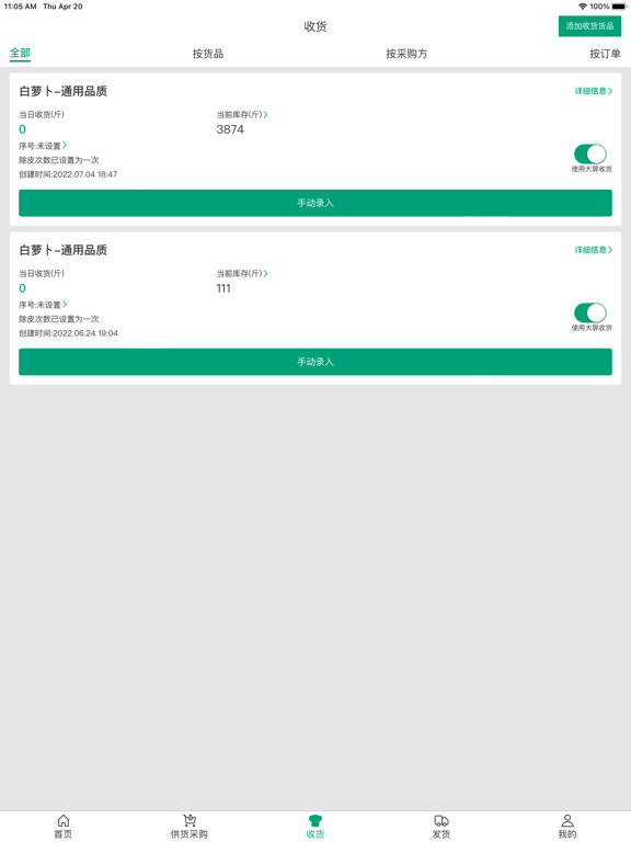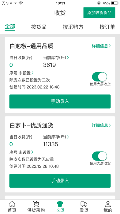 1.智能设备,收货卖货全自动 智能身份识别,让身份信息更安全。自动过磅称重,让蔬菜交易更便捷。实时同步重量,让您摆脱记账难题。 2.远程交易,手机支付更便捷 基于账目信息,快速完成应付款支付,支持线上渠道支付和线下记账支付,笔笔精确支付,明晰应收应付,加速客户之间的交易和流通效率; 3. 操作简单,支持业务场景多 平台针对不同角色陈列不同功能,系统高度贴合行业特性,业务场景覆盖全,流程化订单处理、业务全程流程化跟踪,界面简洁直观,傻瓜式操作,有效降低人员培训难度,减少人员培训成本; 4.快速找车,完成短长途运输 平台无缝衔接自有货运平台,满足货主找车发货,平台担保货主运输,专业司机运输,减少货损,延时等问题,提高农产品运输效率; 5.收支明确,账目信息全同步 通过软硬件结合的系统平台,使得业务信息记录更详实,丢掉纸笔计算器,自动生成账目信息,代办摆脱传统的纸质记帐,解决记帐难、管理难、对帐难等难题; 6.业务协同,贴合全流通环节 依托软硬件平台化工具,实现全业务海量流通节点数字化,线上线下订单、多渠道客户、资金、库存等统一管理,全产业链业务信息协同同步,助力用户1、1优化了订单修改记录显示速度 2、同一个账号下大屏设备筛选