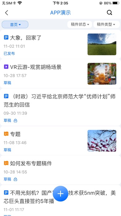 云雀移动采编App实现了内容发布和管理的移动化,随时随地进行随手采编和发稿,使新闻变得更新鲜。使记者可以在任何能使用手机的现场直接写稿、上传、发布,方式更灵活,行动更自由。 支持多种稿件类型的创建和发布;支持对稿件内容和评论的快速审核和管理;支持多随时随地发起直播,实现快速报道;同时实现手机和指挥大屏之间的连线互动。 1、各稿库图集稿、文章稿、电视文稿、视频稿、音频稿增加修改痕迹 2、修复已知问题,提升用户使用体验