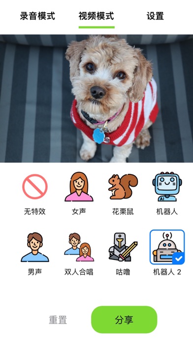变声器是一个非常有好玩有意思的声音特效软件,使用变声器,你可以很方便的将你的声音或者视频的声音转换成另一种声音,例如男声变女声,外星人,回声,加快变慢等等。 产品特色 - 使用麦克风录制声音 - 长按说话,上滑手指取消录音,操作方便 - 实时声音特效预览,内置多种声音效果 - 支持视频模式变声,自动加速或者减速视频内容,无需再次编辑视频,一键应用声音特效 - 录音变声支持音频或者视频格式内容导出 - 视频变声支持高清分辨率导出 快来下载试试看吧,变声让你的微信朋友认不出来 自动订阅内容: VIP 会员 - 按月、按年或一次性购买无限制访问完整版的所有功能 当您确认购买时,订阅费将计入您的 iTunes 帐户,并且订阅将自动续订,除非您在当前订阅前至少 24 小时取消订阅。 您的帐户将在当前订阅期结束后 24 小时内从您的套餐中扣除。 购买后,您可以随时在 Apple ID 帐户设置中管理或关闭自动续订。 隐私政策:https://note.youdao.com/s/E5AXtqMd 服务条款:https://note.youdao.com/s/b68DbWk0- 适配iOS26 - 修复部分已知错误