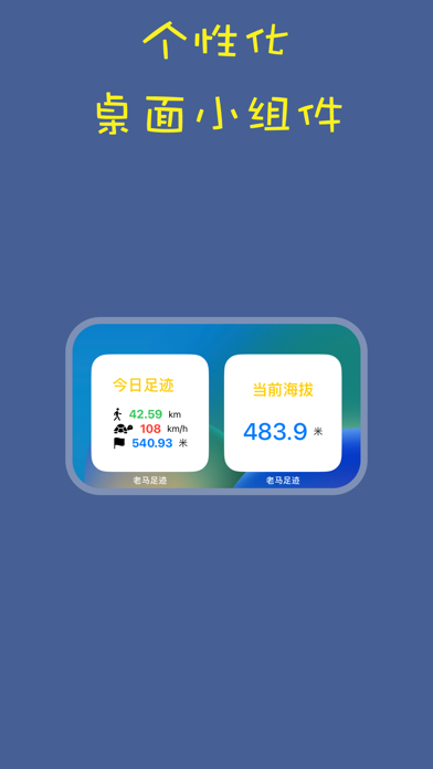 老马足迹是一款全自动记录您生活轨迹的App,在不需要打开App的情况下自动后台记录,自动生成轨迹, 查看海拔和位置。 徒步、跑步、骑行、自驾游等爱好者的必备软件。 轨迹录制功能可以将您正在的行驶路线进行打点保存,跟随路线行驶,永远不迷路。 免自动登录iCloud免费备份 【日历】将您每天的足迹进行汇总显示,每日数据一目了然 【足迹查询】足迹随意查,行驶海拔曲线显示。 【历史足迹】今生全部的诗和远方 【轨迹回放】炫酷的上帝视角,行驶视频一键分享 本软件解决了旅行信号的人在无人或地方迷路的问题,可以在无人区的道路上开启手机的预告功能,根据测绘路段轻松回程的过程。 演示视频地址:https://v.youku.com/v_show/id_XNTgwMzc1Mjc3Ng==.html- 优化小组件显示